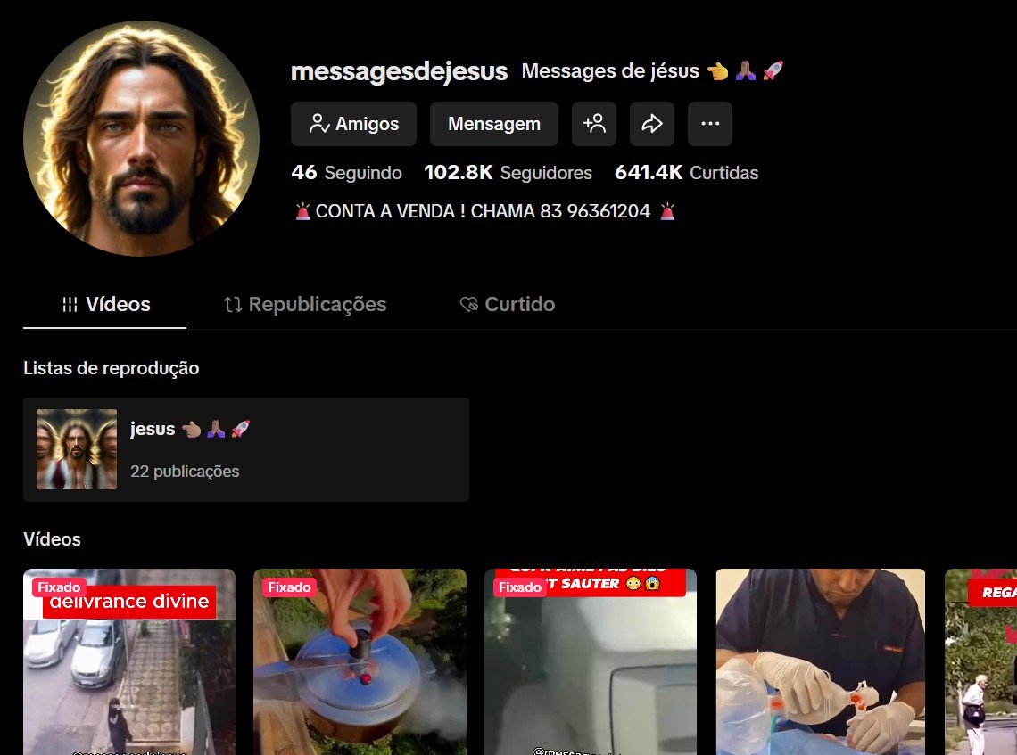 Promoção Conta Tiktok 102,8 Mil Seguidores engajado e nicho viral religião em francês
