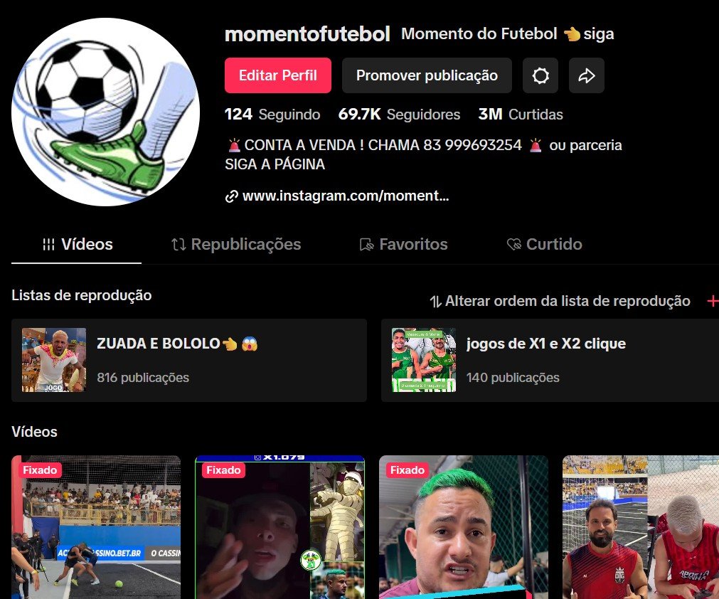 PROMOÇÃO Conta Futebol tiktok , cresce rapido 69,7k de seguidores TIKTOK SHOP ATIVO