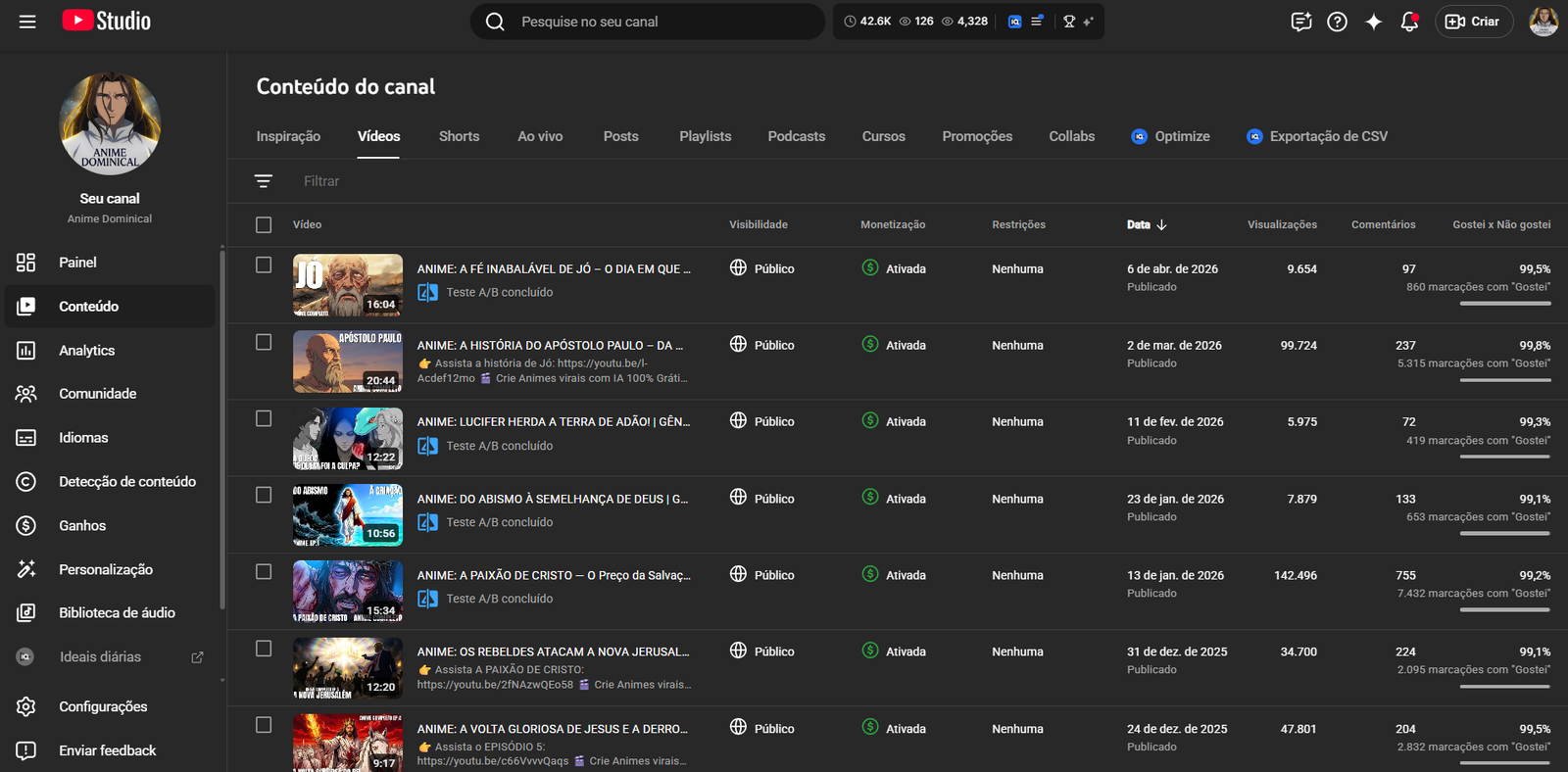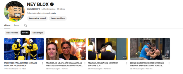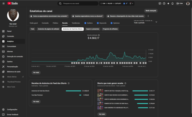Canais no YouTube: Monetizados ou com potencial de crescimento.