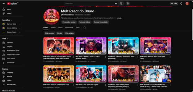 CANAL YOUTUBE MONETIZADO | QUASE 1000 INSCRITOS | 68 MIL VIEWS | 50 VIDEOS | MULTI REACT – DESENHOS FAVORITOS | NICHO ENTRETENIMENTO | PRONTO PARA NOVOS PROJETOS
