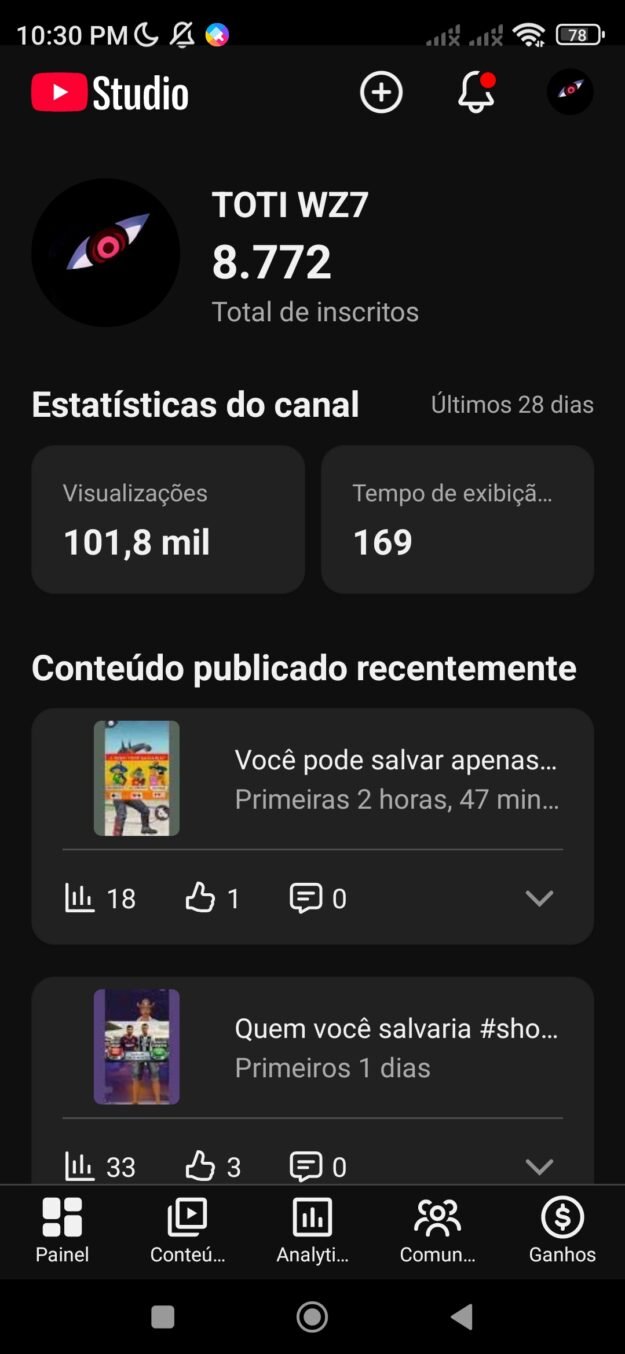 Canal Top de Entretenimento do Gorilão Vlogger com 10.200 inscritos