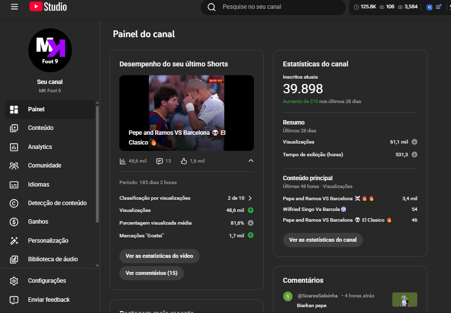 Canal Youtbe de futebol – Já fez mais de 10k quando monetizado
