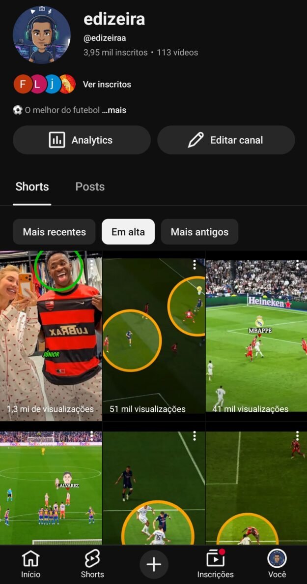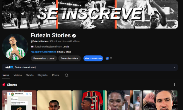 Conta do YouTube (Nicho Futebol) quase 4 mil inscritos