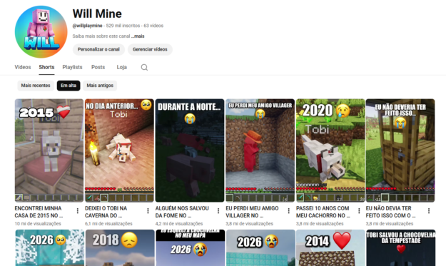 CANAL MONETIZADO MINECRAFT DARK SHORTS 500K – CRIADO EM JANEIRO