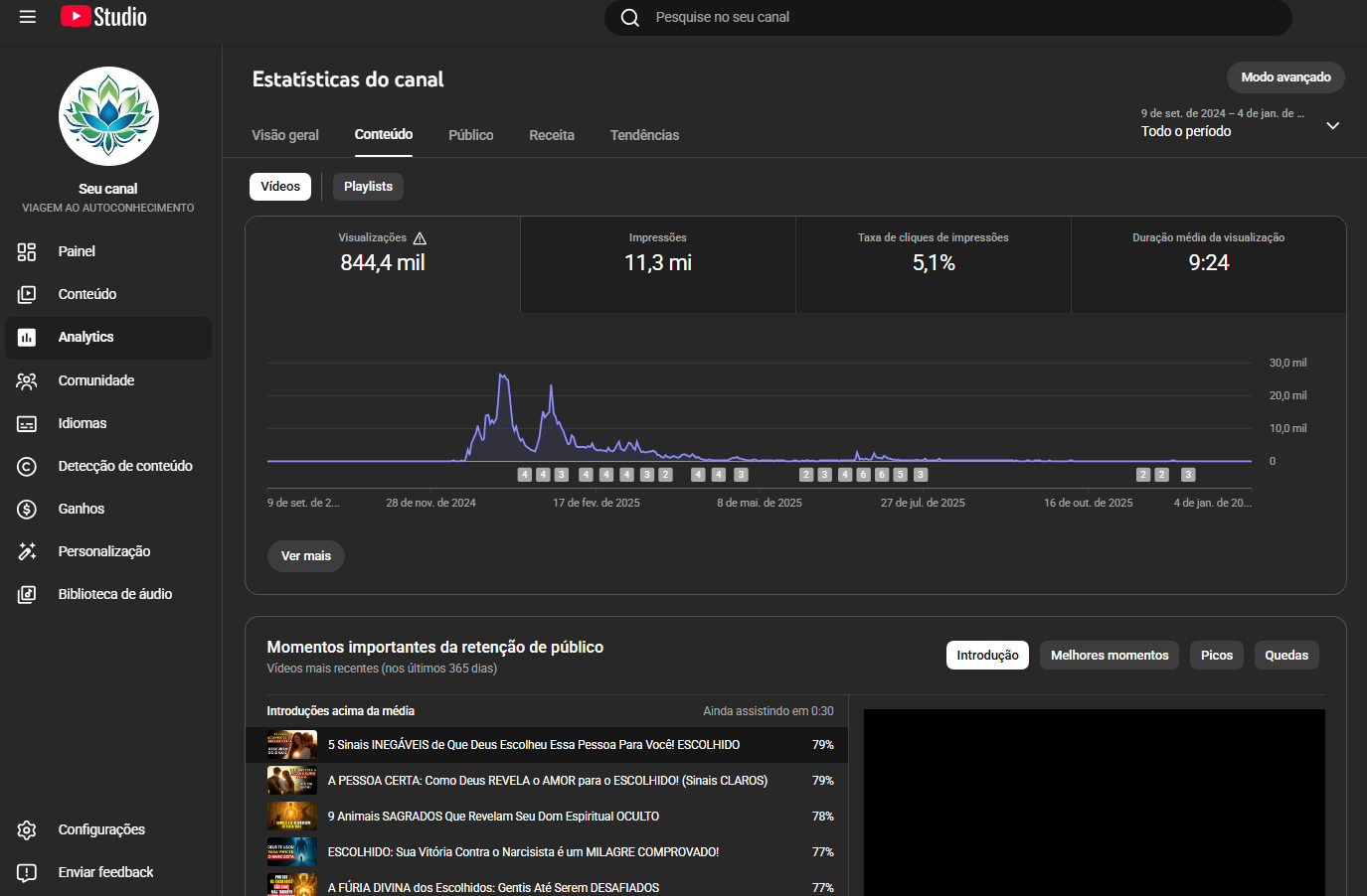 Canais no YouTube: Monetizados ou com potencial de crescimento.