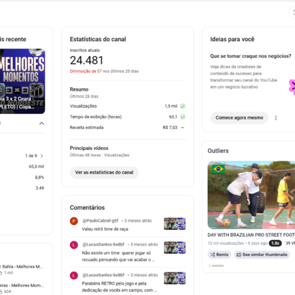 CANAL DE FUTEBOL MONETIZADO E COM MAIS DE 24MIL INSCRITOS (PROMOÇÃO) ACEITO PROPOSTAS…