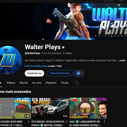 Canal gamer monetizado 1,49 mil inscritos