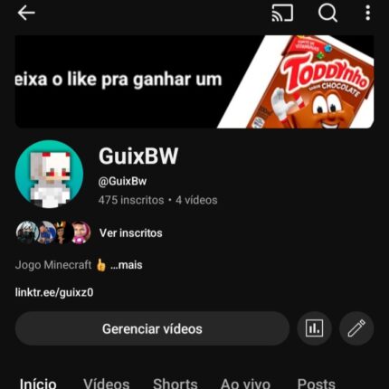 Canal Youtube gamer com 2800 mil inscritos