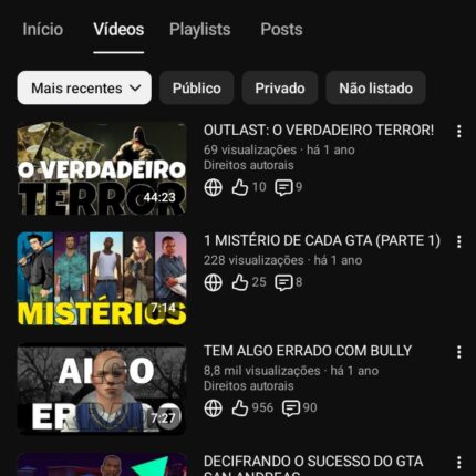 Canal Youtube com 12 mil inscritos
