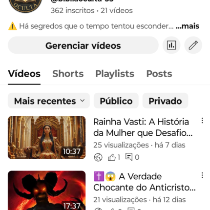 Canal Bíblia Oculta 362 inscritos