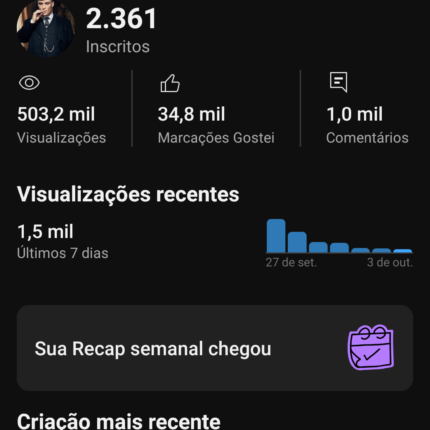 Canal do Youtube com 2,36 mil de inscritos