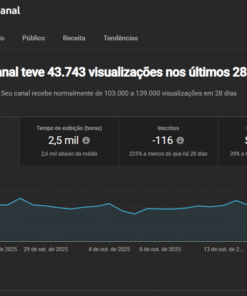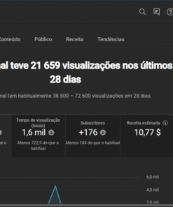 Canal do YouTube com 1.223 inscritos – Monetizado / Não faço por menos de 2500
