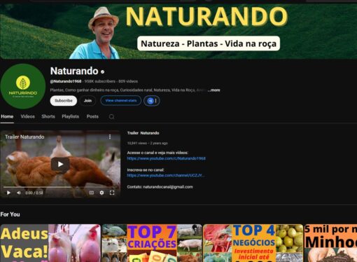 Canal Youtube monetizado Agronegócio e Curiosidades da Natureza – 958K Inscritos• 809 videos – Rendendo Bem