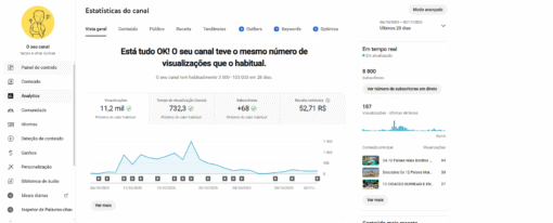 CANAL YOUTUBE MONETIZADO COM 8,8K DE INSCRITOS