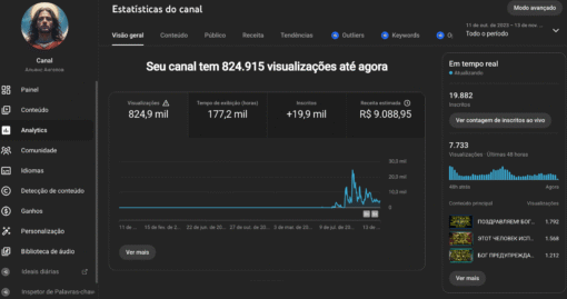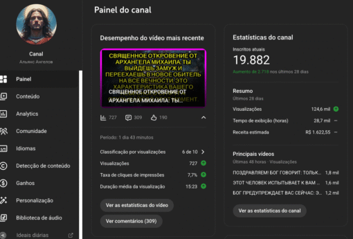 Canal MONETIZADO mensagem dos Anjos em Russo com 19.800 inscritos