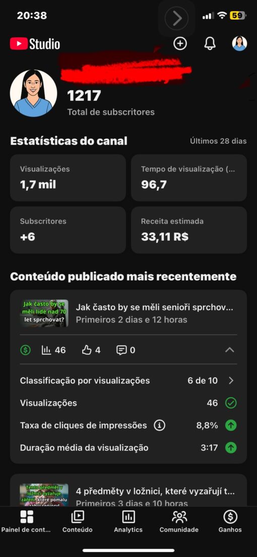 2 Canais de saúde Monetizados 1,21 mil inscritos E 7,29 mil inscritos