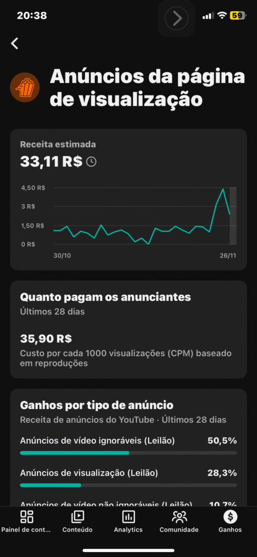 Canal Dark CPM R$72 em Frances 31,1 mil inscritos
