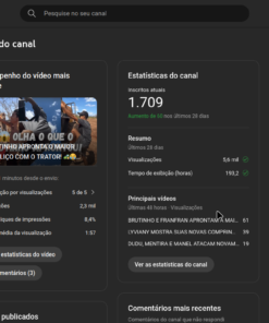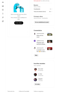 Canal YouTube 105 mil inscritos • 198 vídeos com crescimento constante