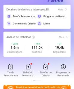 Conta Kwai com 246,7k. Visualização, 21,2k curtidas, 3,1k de seguidores conta já gerando renda