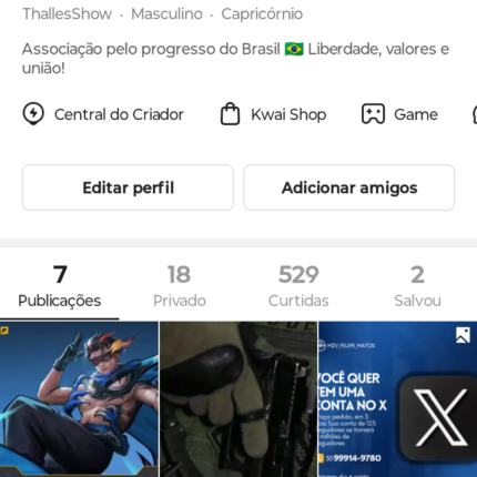 Conta KWAI Games X(599K de seguidores) Sem banimentos (Aceito ofertas)