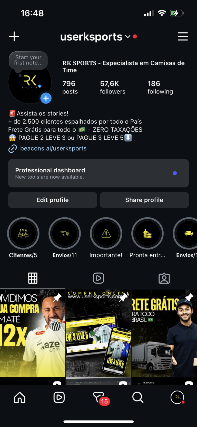 Perfil de loja de artigos esportivos / + de 57k seguidores / Nicho esportes