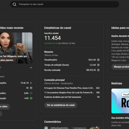 Canal Youtube de Moda Feminina com +11 mil inscritos e Monetizado