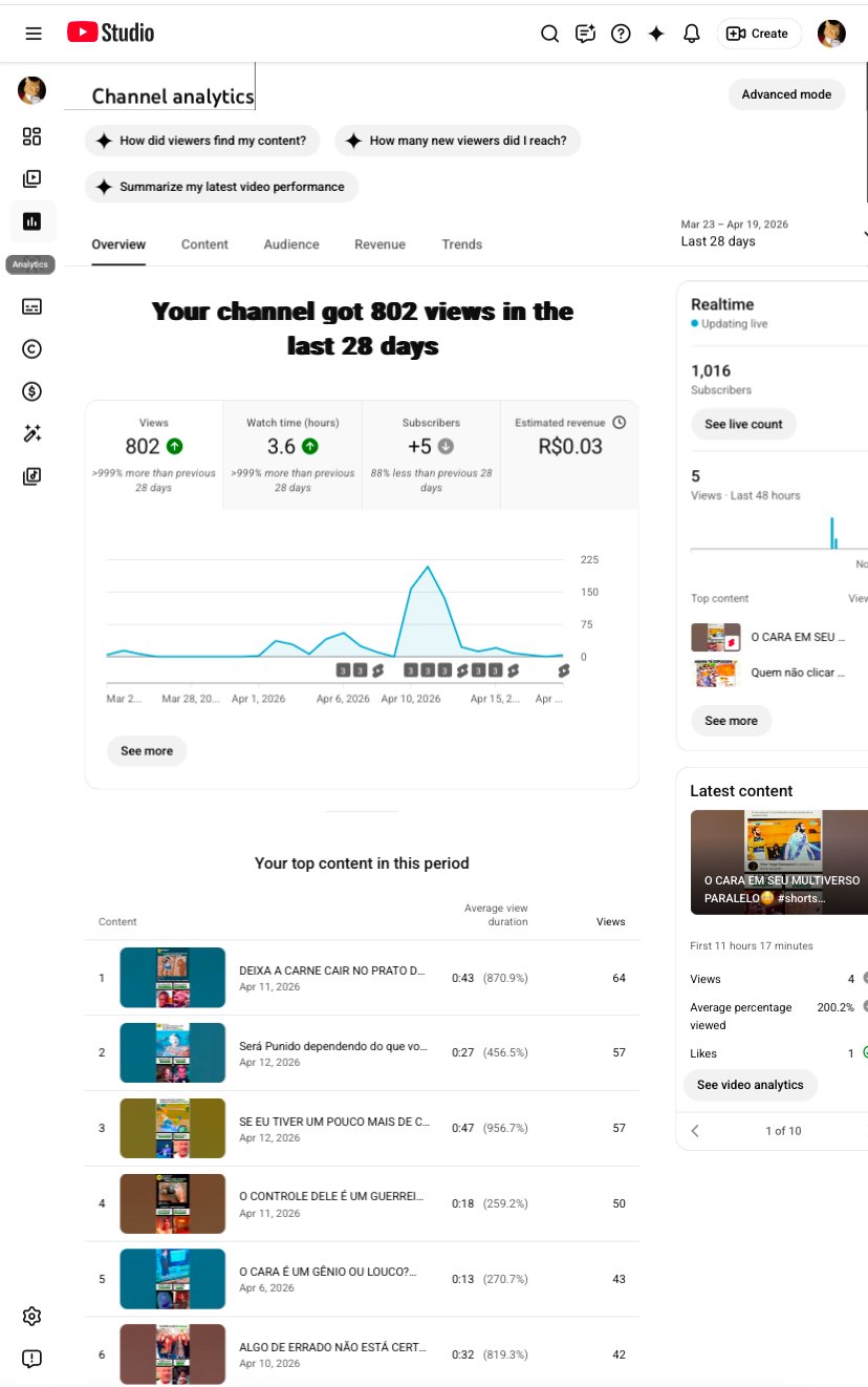Canal já monetizado 💰, no nicho de humor e entretenimento 😂, pronto para quem quer começar já com tudo ativo e focar em crescimento.