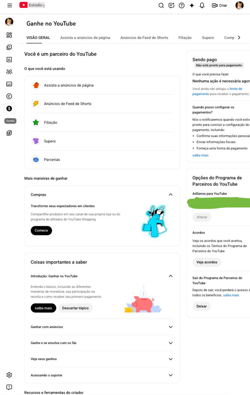 - Detalhes do Rendimento: Monetização YouTube ativas: anúncios, seja membro, brandconect, superchat, valeu legal, HYPAR vídeo.