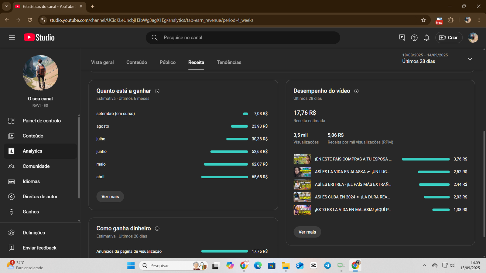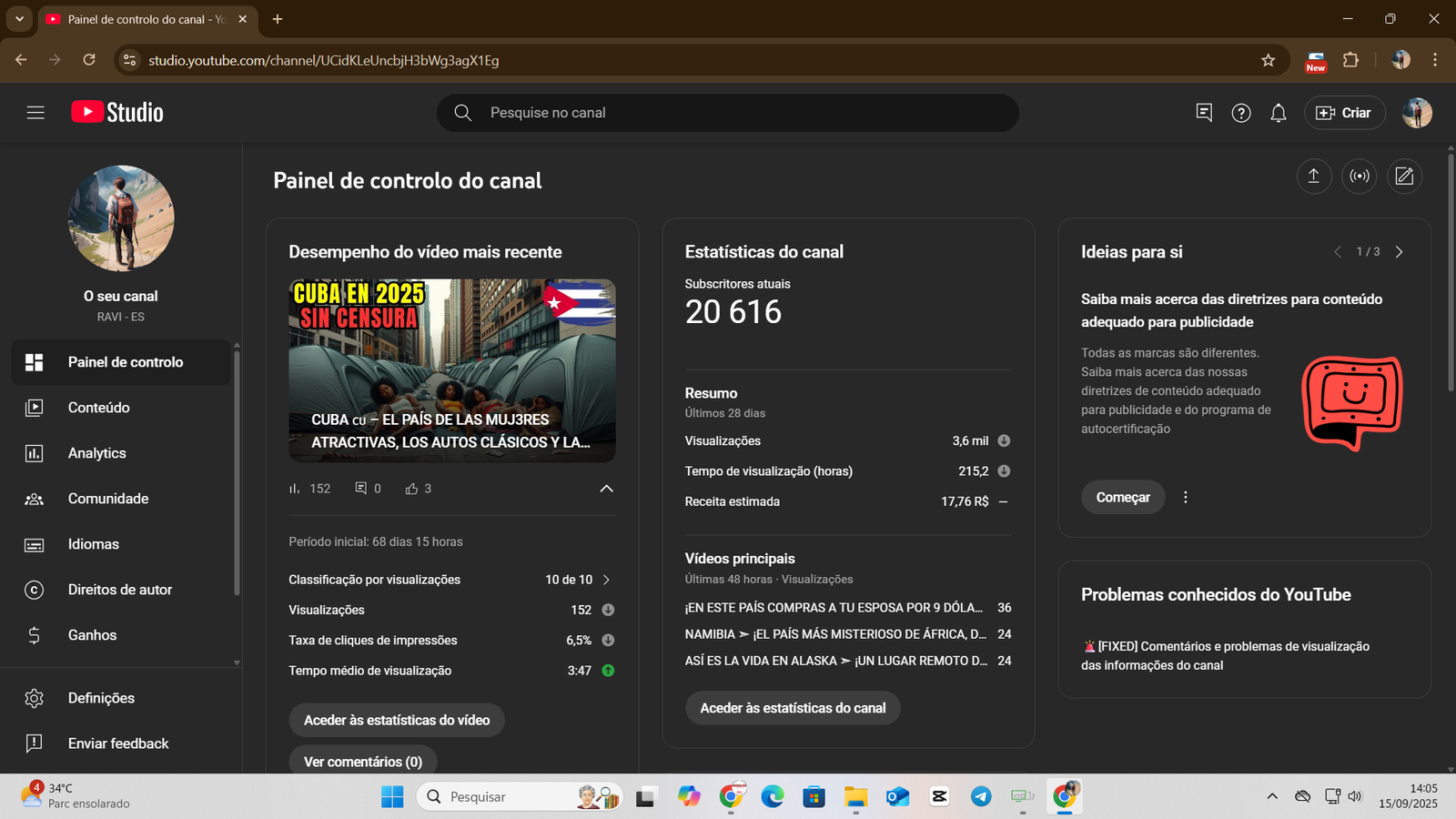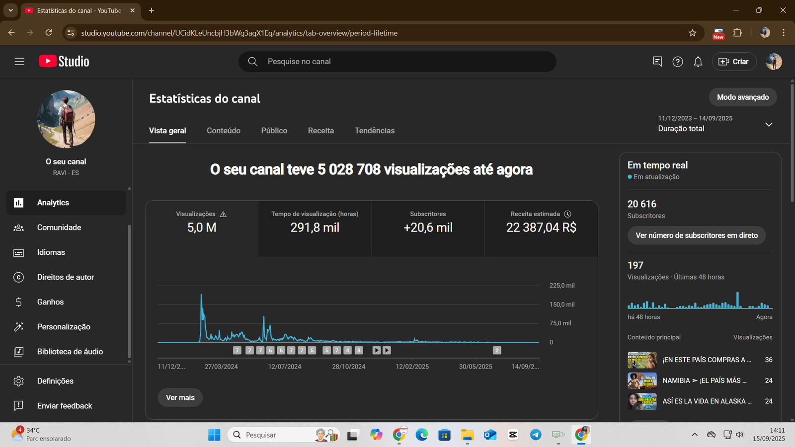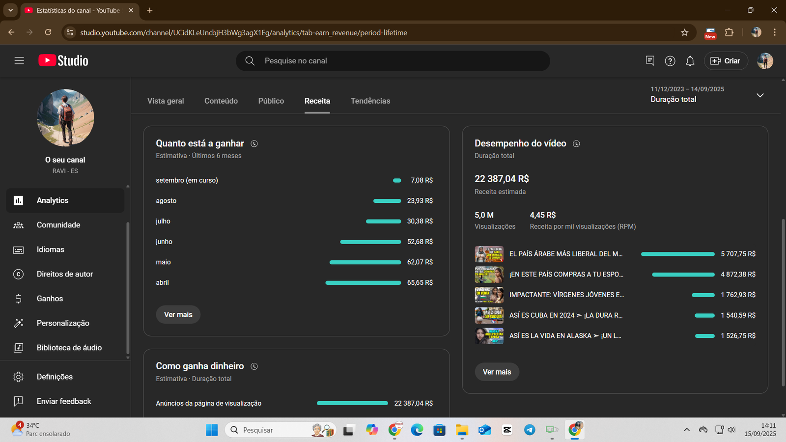 👉 Canal já possui base sólida de inscritos e histórico de faturamento consistente, com mais de R$ 22 mil já recebidos em AdSense.
