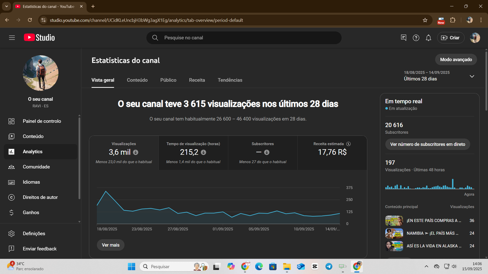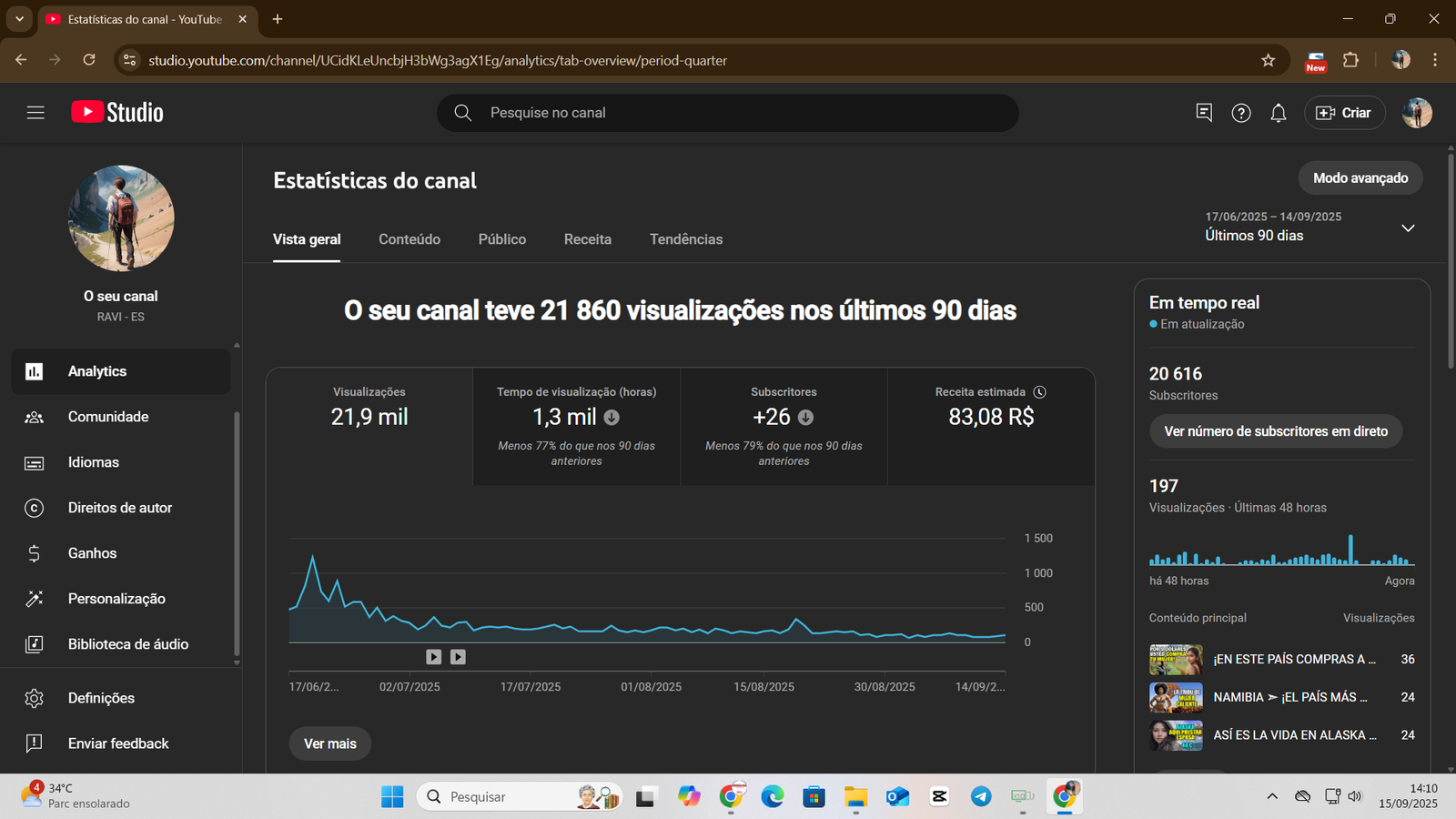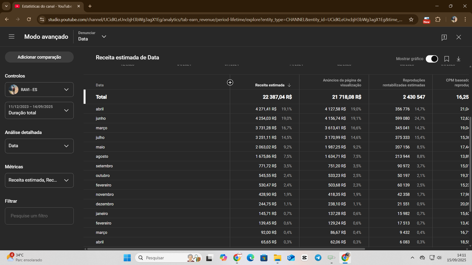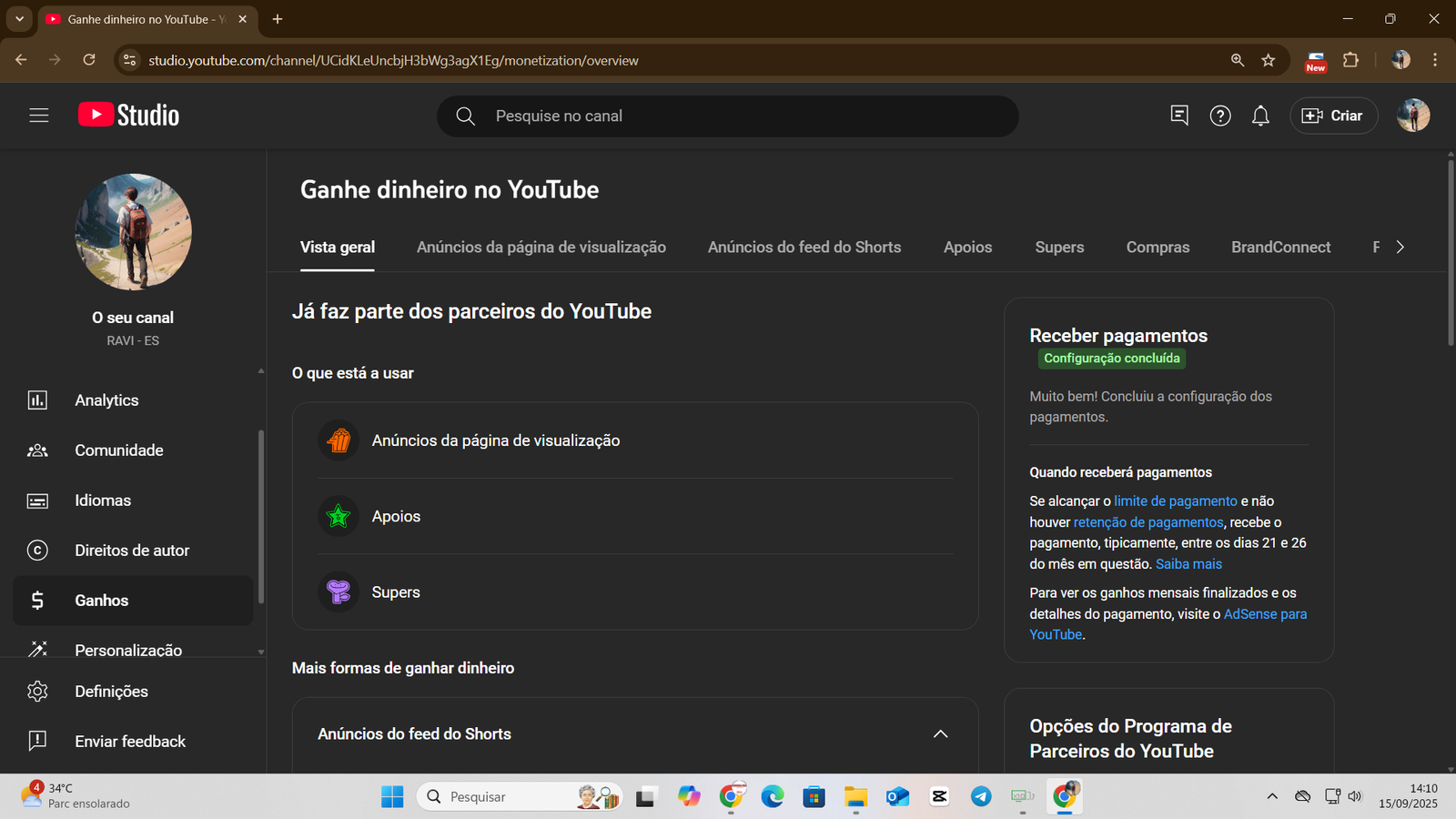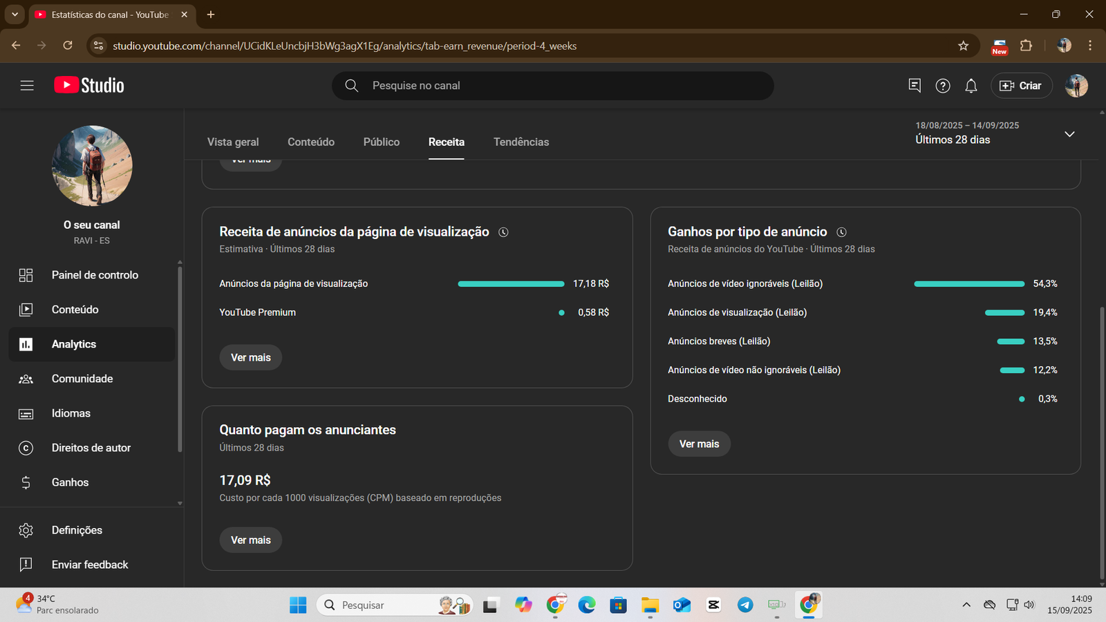 👉 Canal já possui base sólida de inscritos e histórico de faturamento consistente, com mais de R$ 22 mil já recebidos em AdSense.