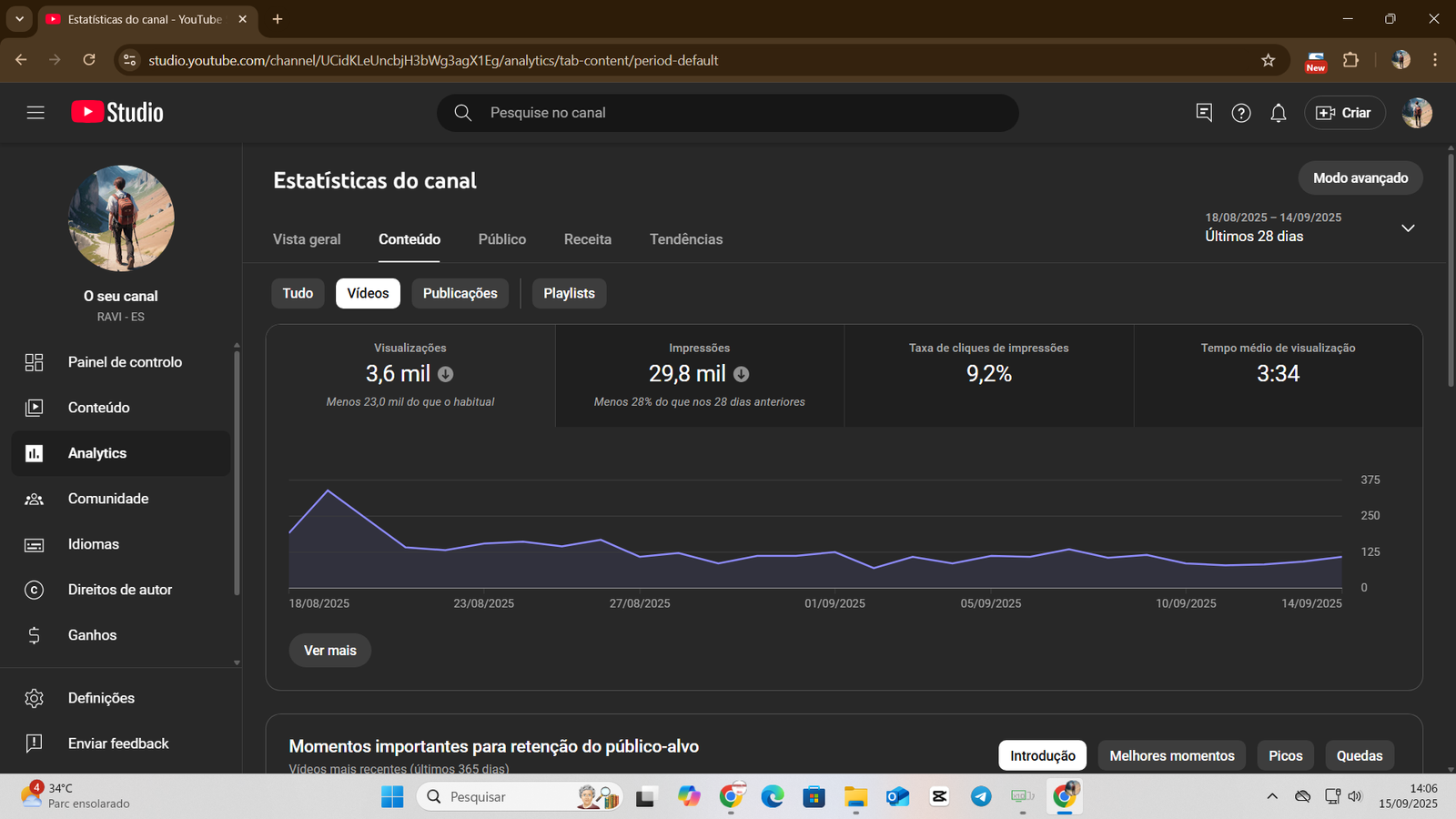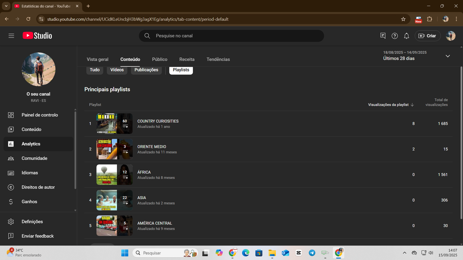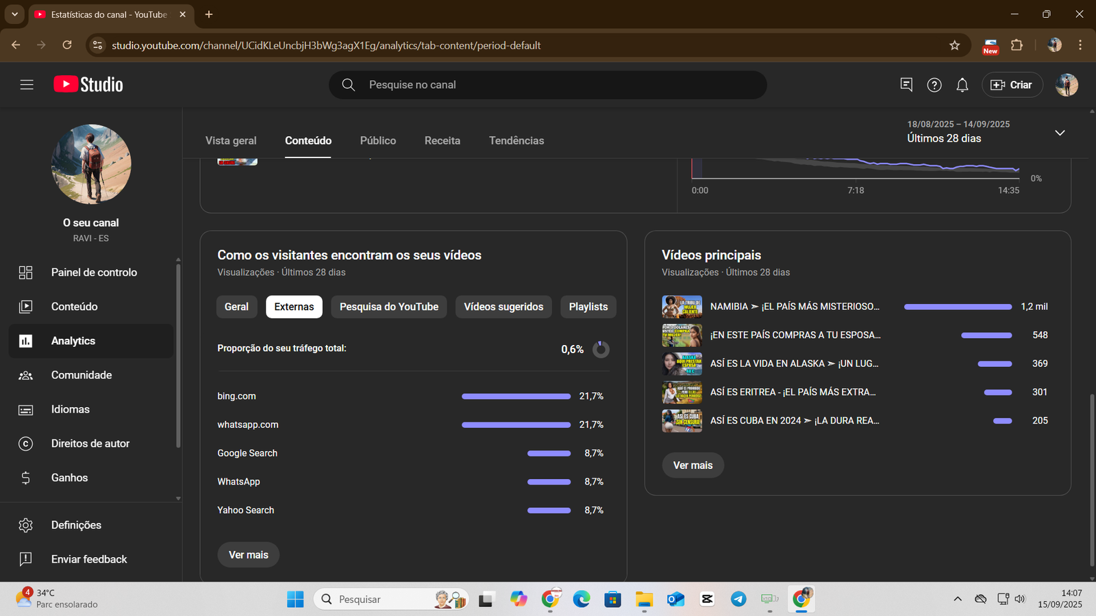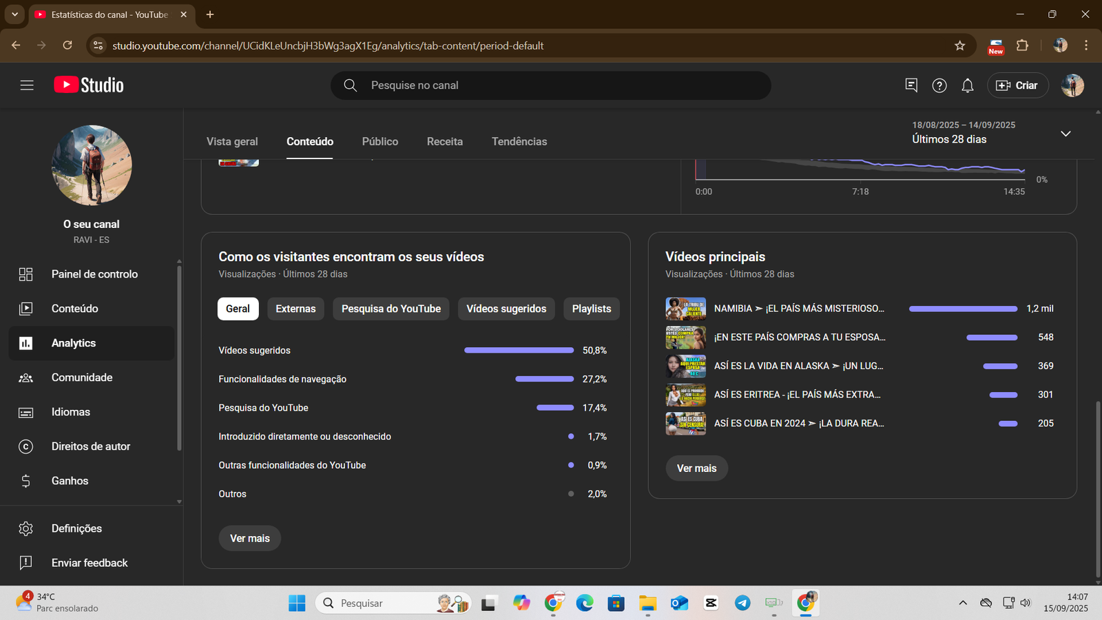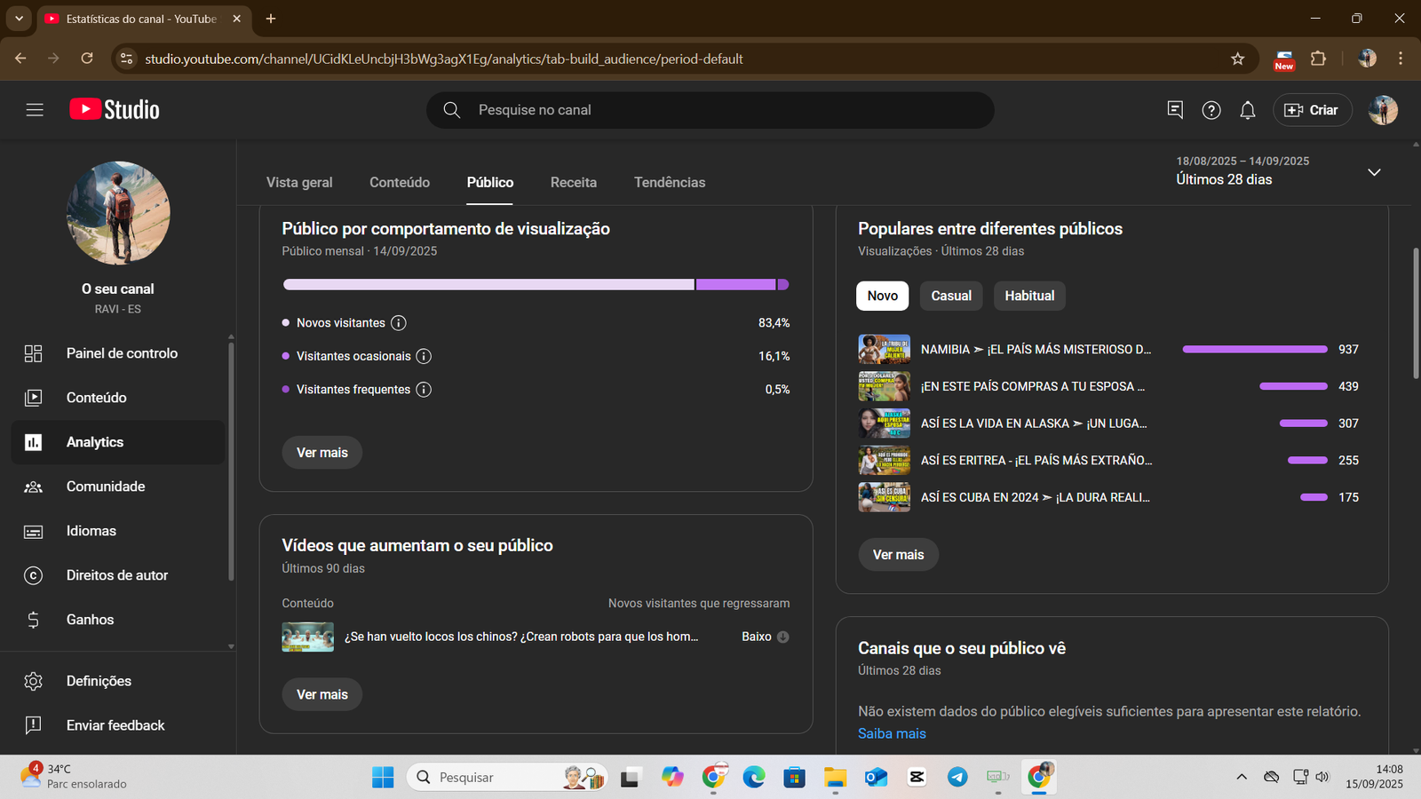 +1,5 mil views/dia em vídeos sugeridos, mesmo com canal parado.