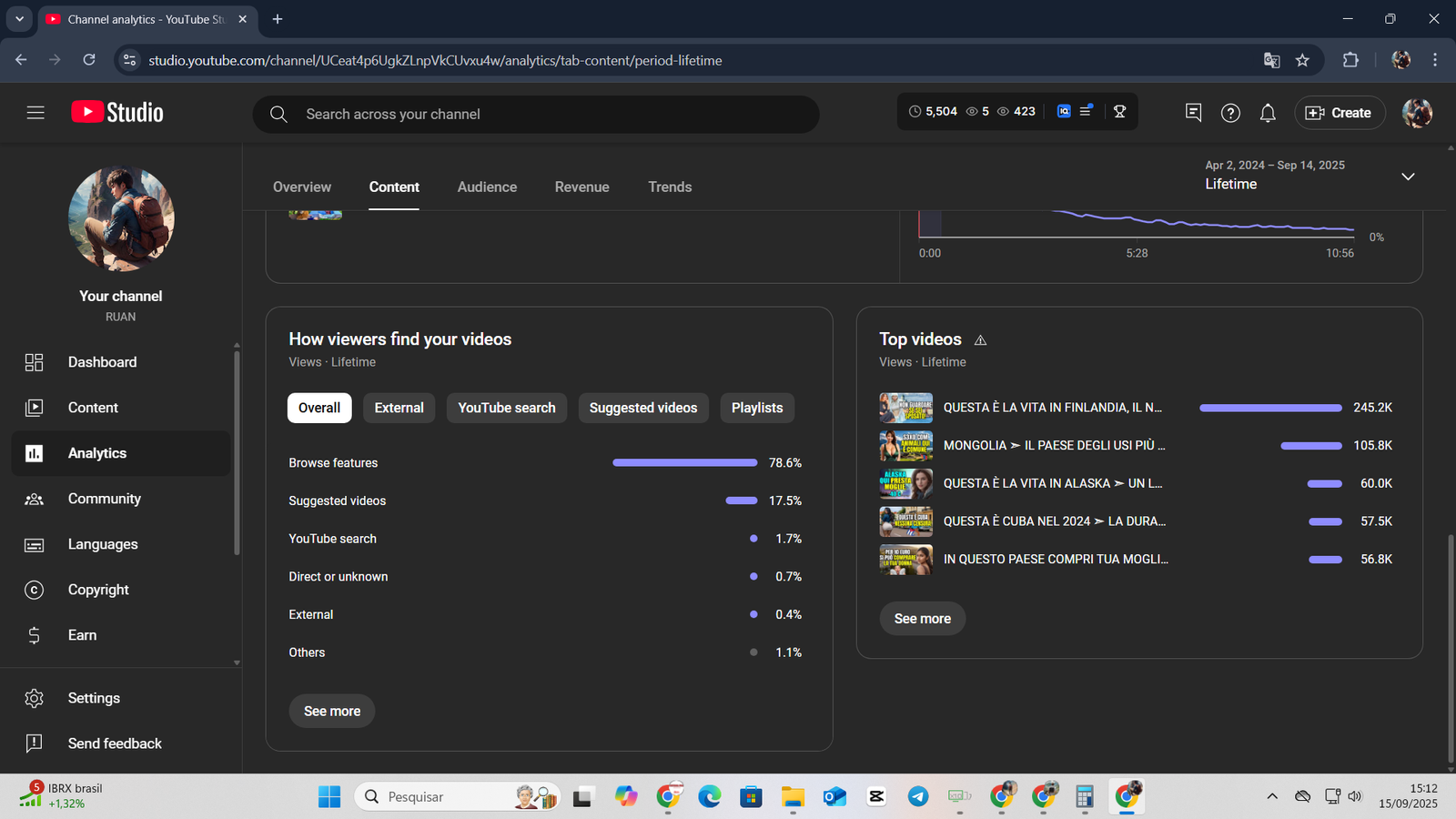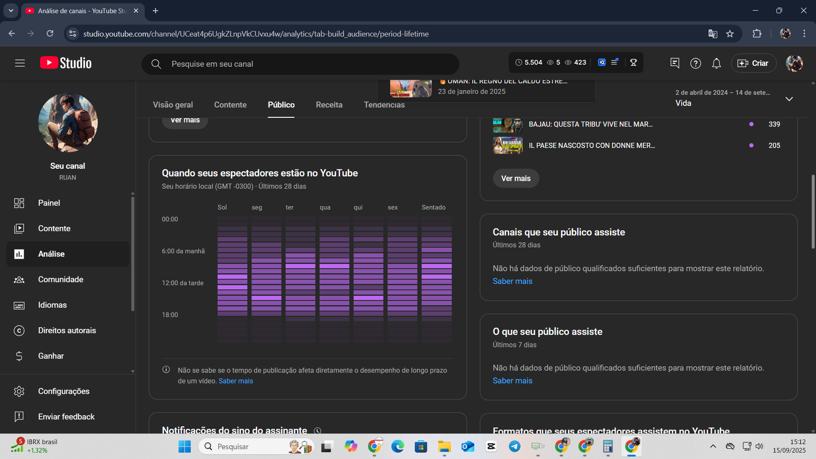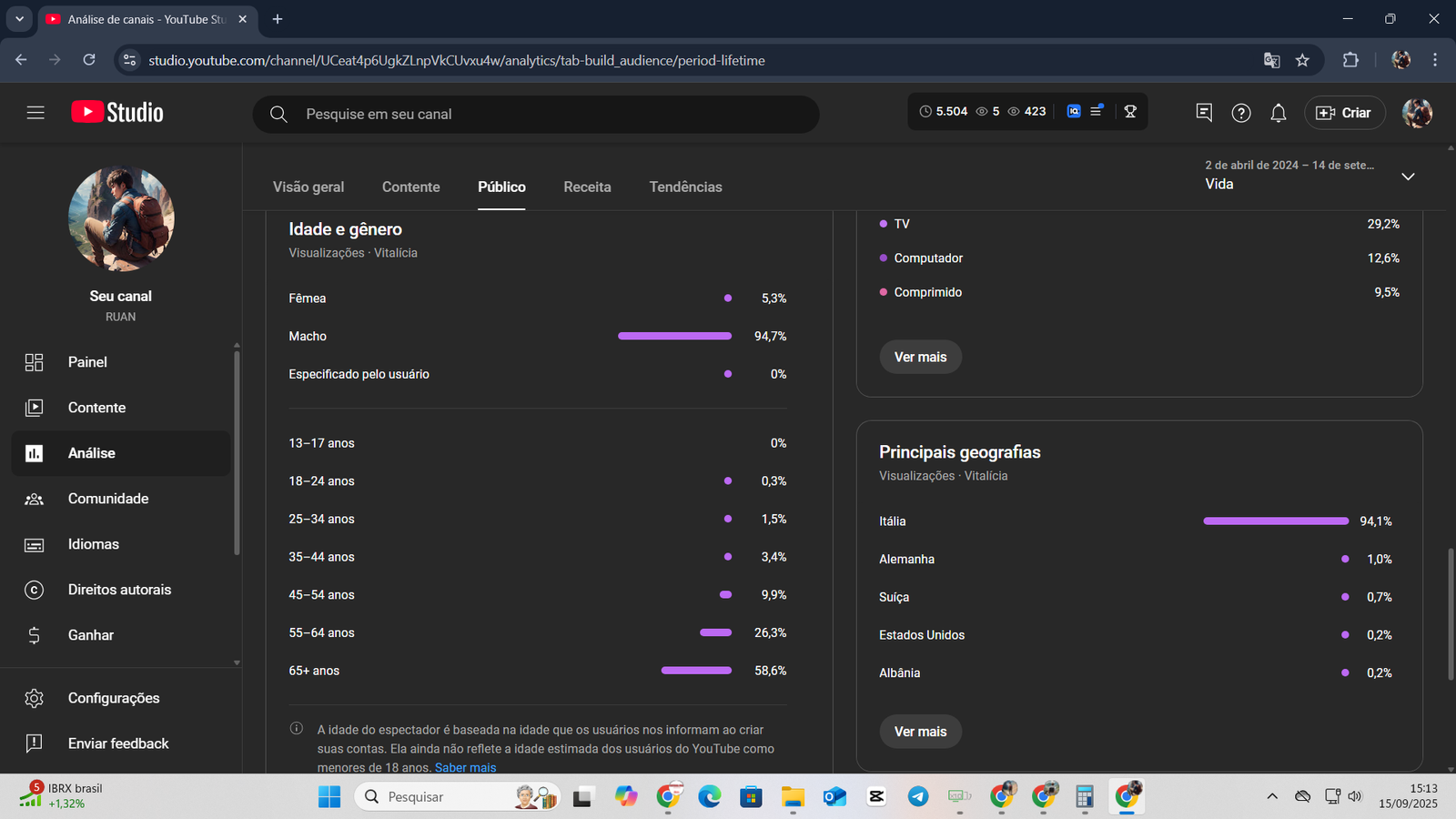 👉 Canal já monetizado e com público europeu (potencial de CPM alto).
