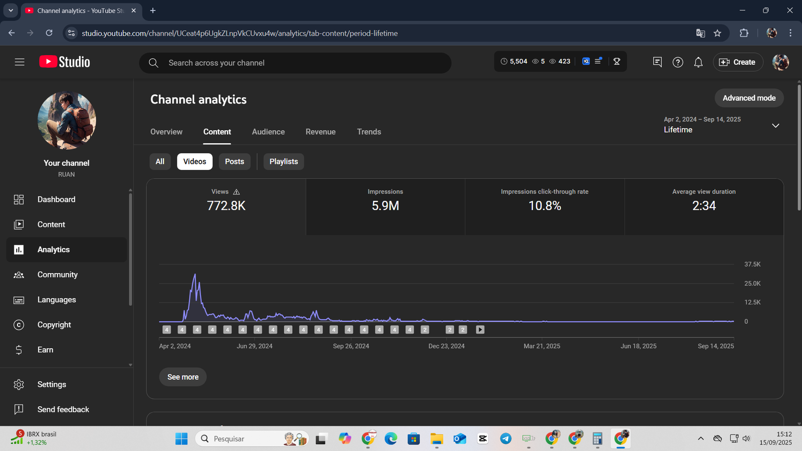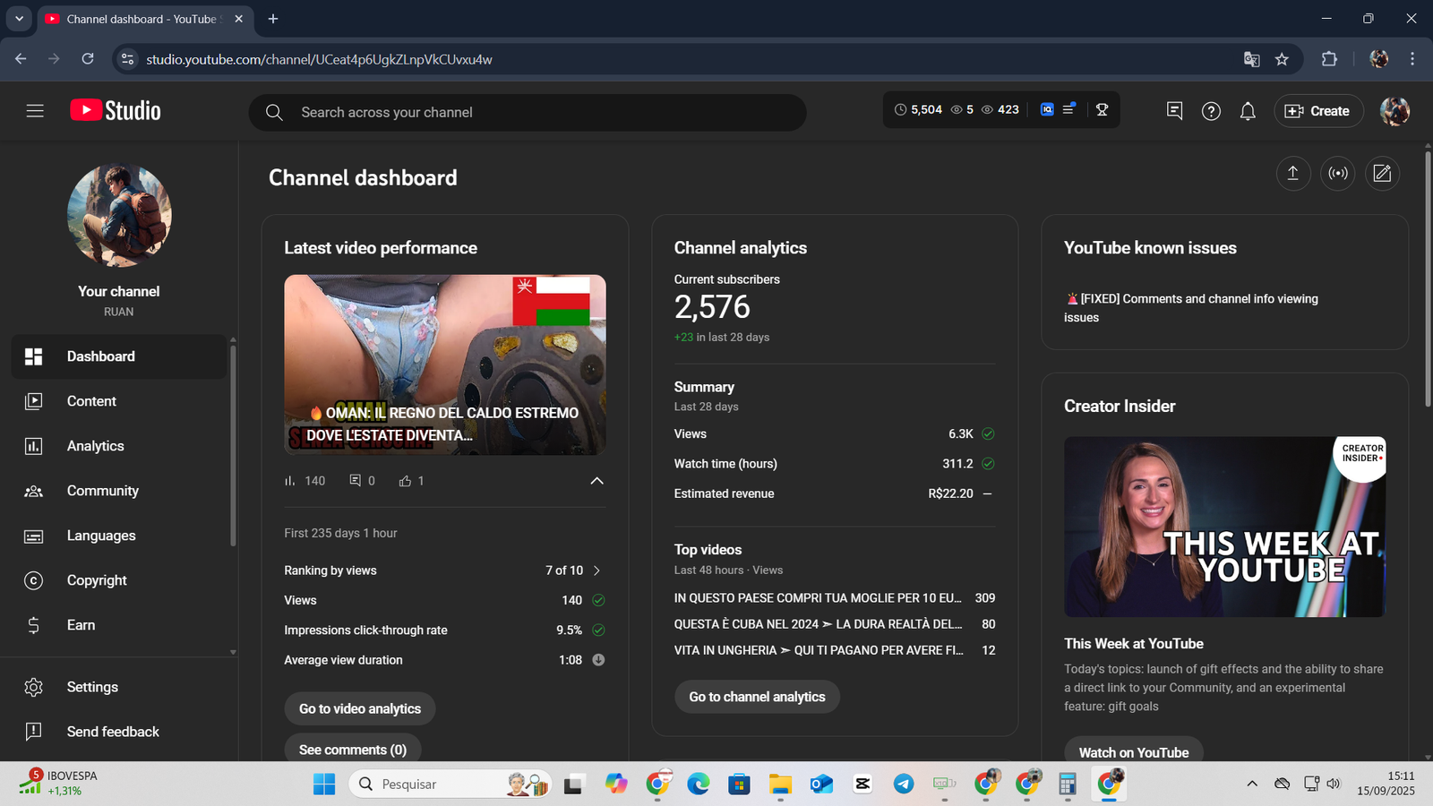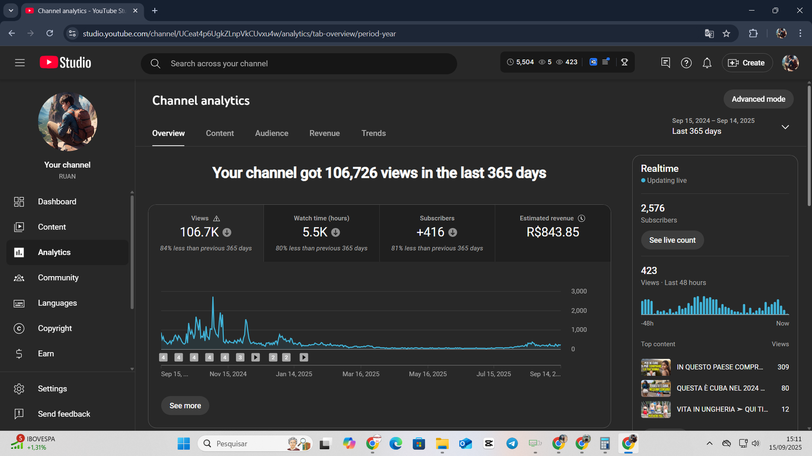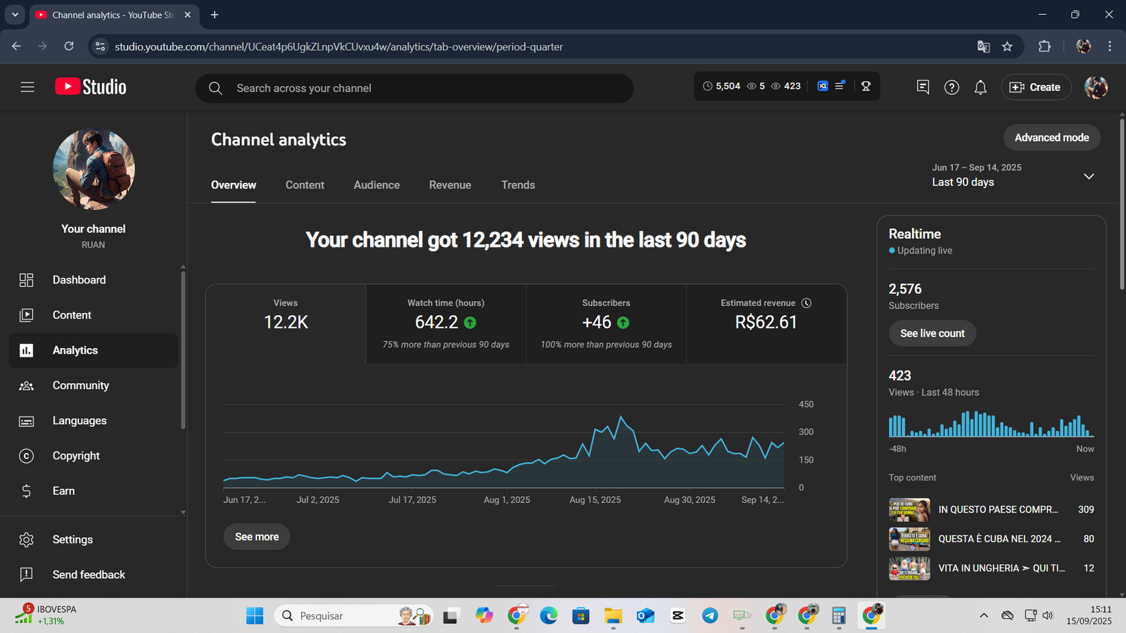 👉 Canal já monetizado e com público europeu (potencial de CPM alto).