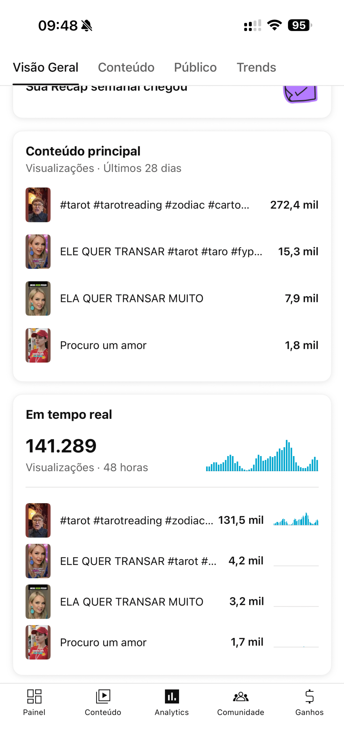 💥 Todos os vídeos com altos níveis de engajamento e viralizações constantes
