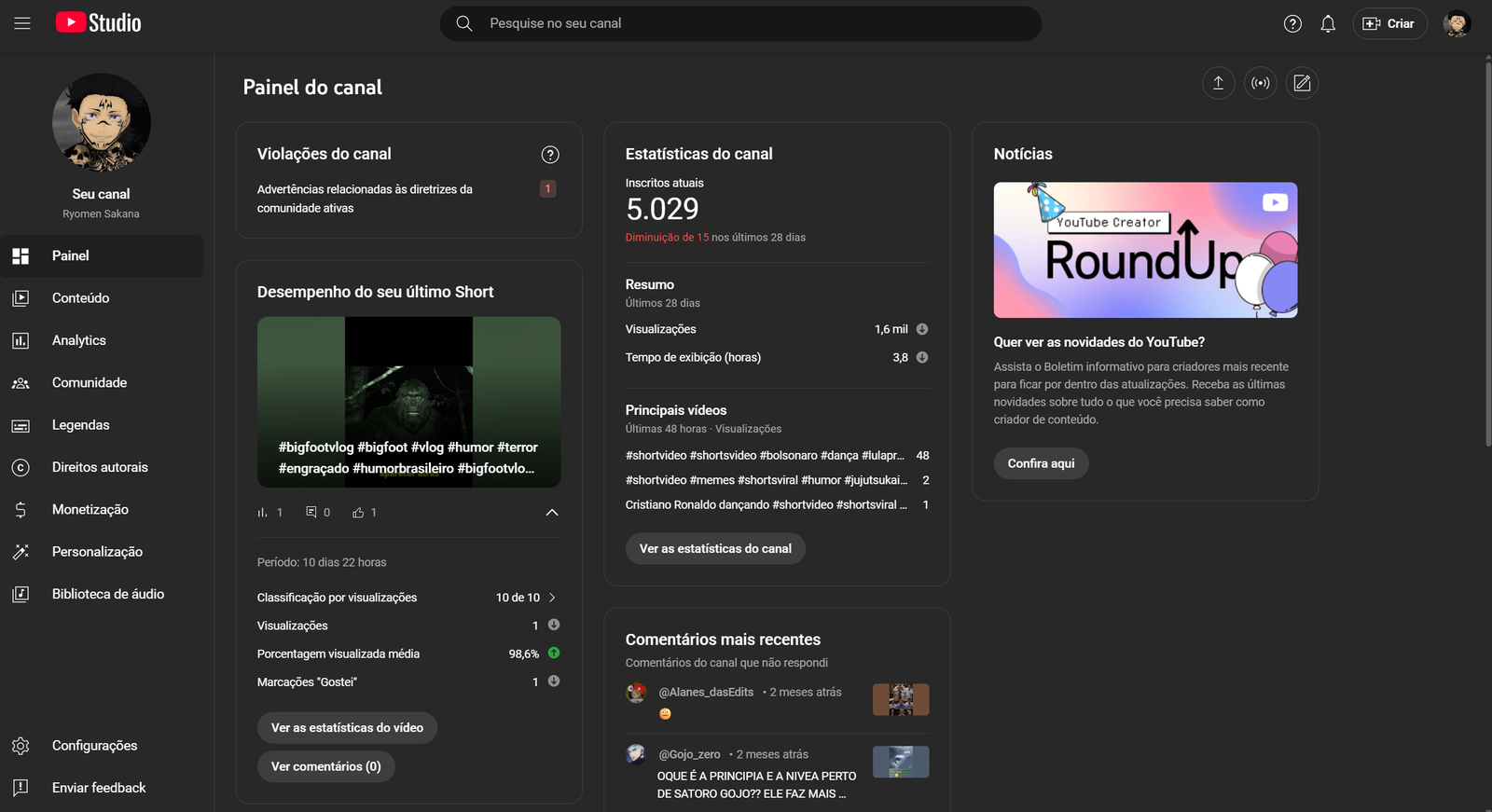 Canal limpo, sem strikes, atualmente sem monetização ativa — ótima oportunidade para quem quer crescer rápido e ativar ganhos no YouTube.