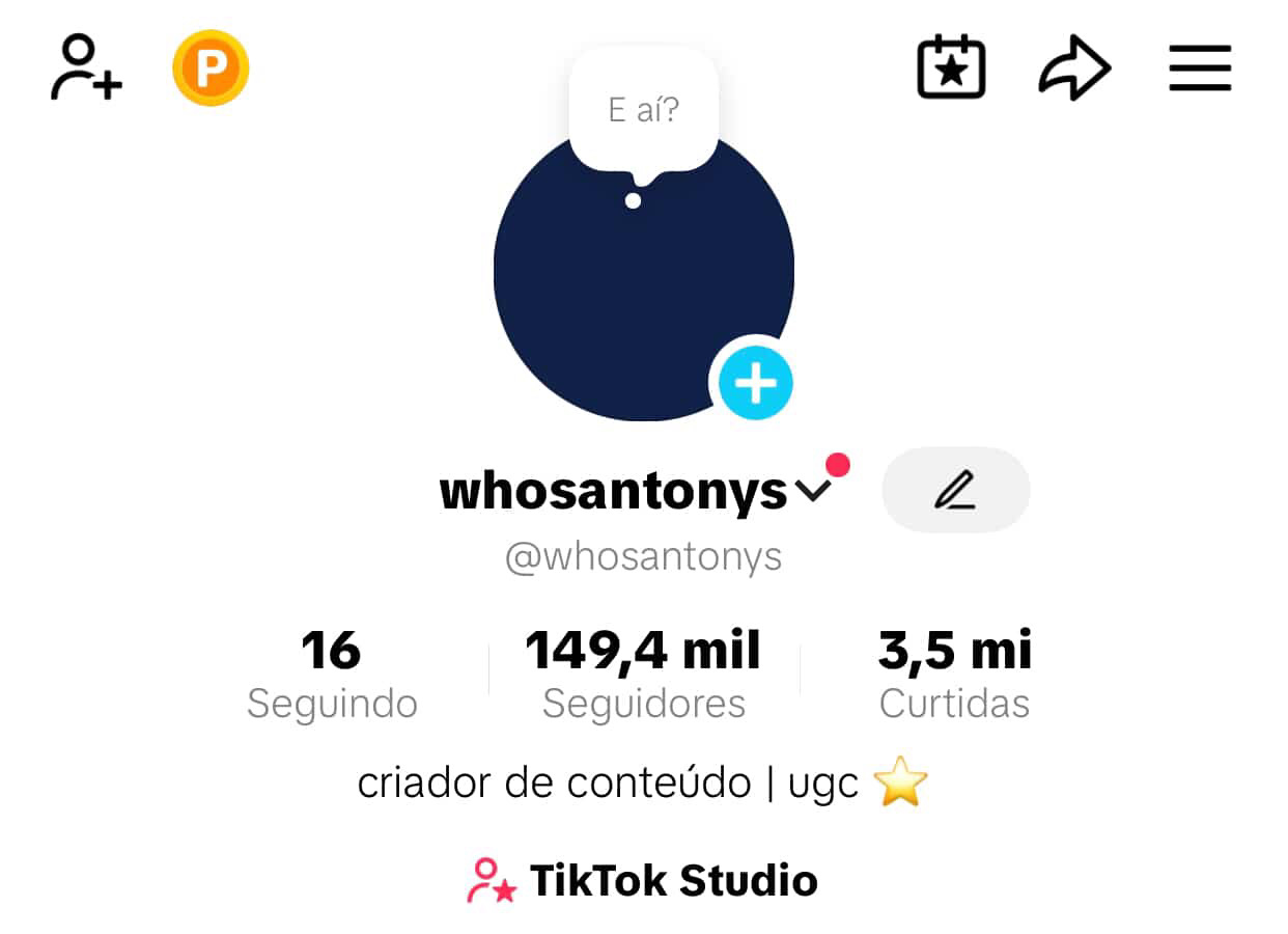 Vendo conta do TikTok @whosantonys com 149,4 mil seguidores e 3,5 milhões de curtidas.