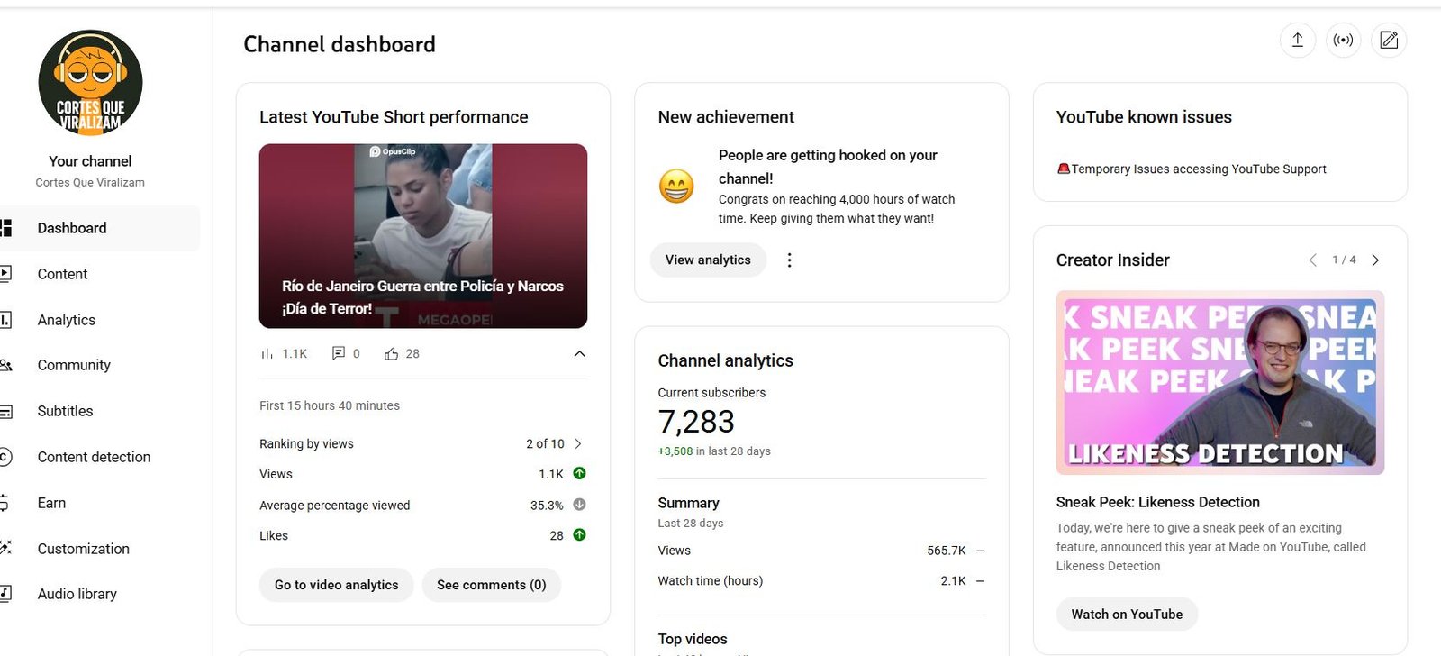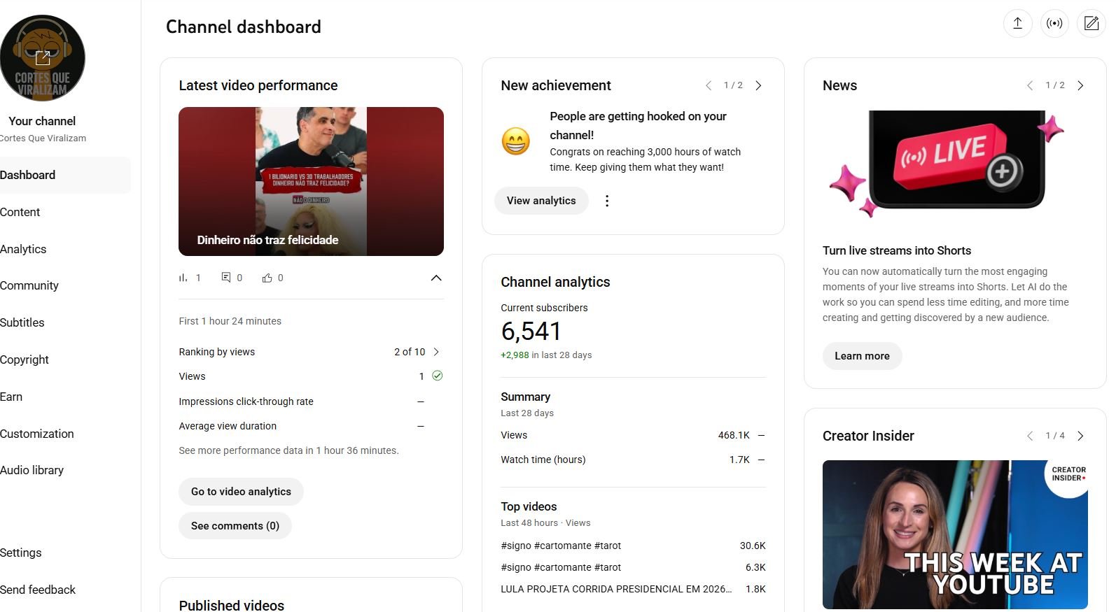 📈 Crescendo em inscritos sem parar – já passou das 4 MIL HORAS e 1.000 inscritos – APENAS ESPERANDO ATUALIZAR PARA ATIVAR MONETIZAÇÃO DO YOUTUBE! ENQUANTO ISSO ELE CONTINUA VIRALIZANDO E SUBINDO INSCRITOS TODO SANTO DIA!!! VEJA NOS PRINTS!