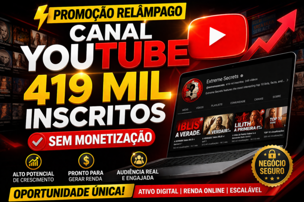 🚀 Canal YouTube com 419 MIL Inscritos à Venda – Oportunidade Única HOJE! O preço original era: R$7.000.O preço atual é: R$6.000.