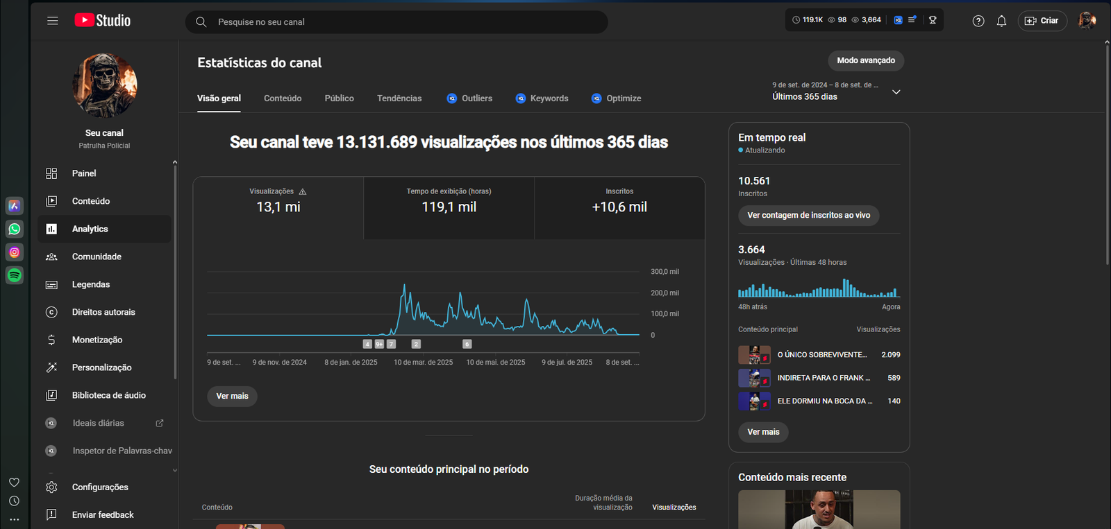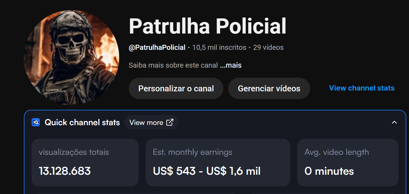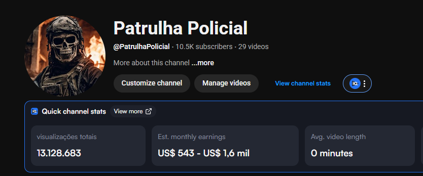 Parei de postar por falta de tempo, mas o canal continua com ótima base para quem deseja monetizar, vender produtos/serviços, ou expandir no nicho de notícias policiais.