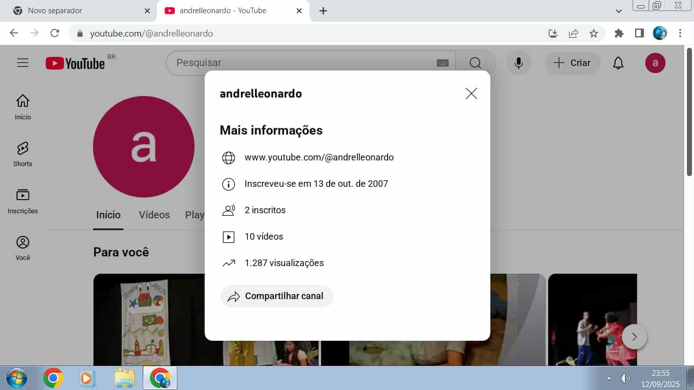 Contas antigas do youtube, uma delas com mais de mil visualizações. Essas contas são muito raras pois são antigas e geralmente o youtube tente a fortalecer mais essas contas, o algoritmo confia mais nelas