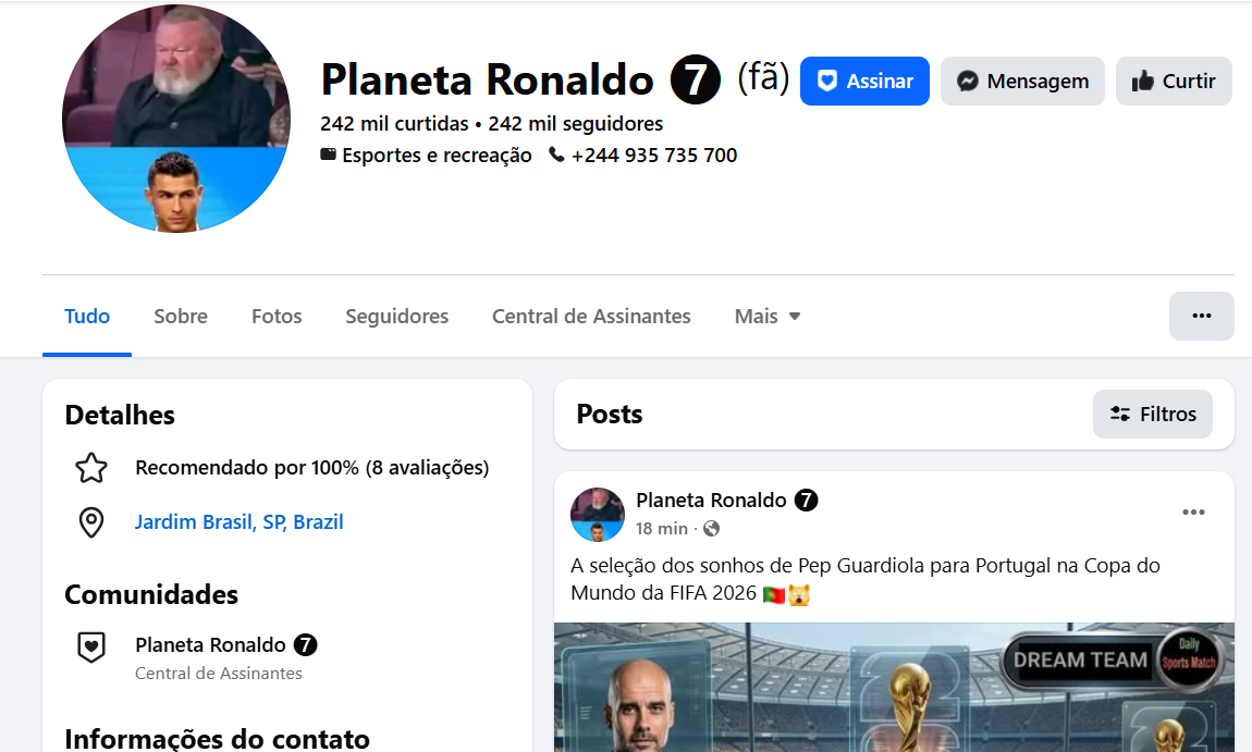 - Link da Conta: https://www.facebook.com/planetaronaldo