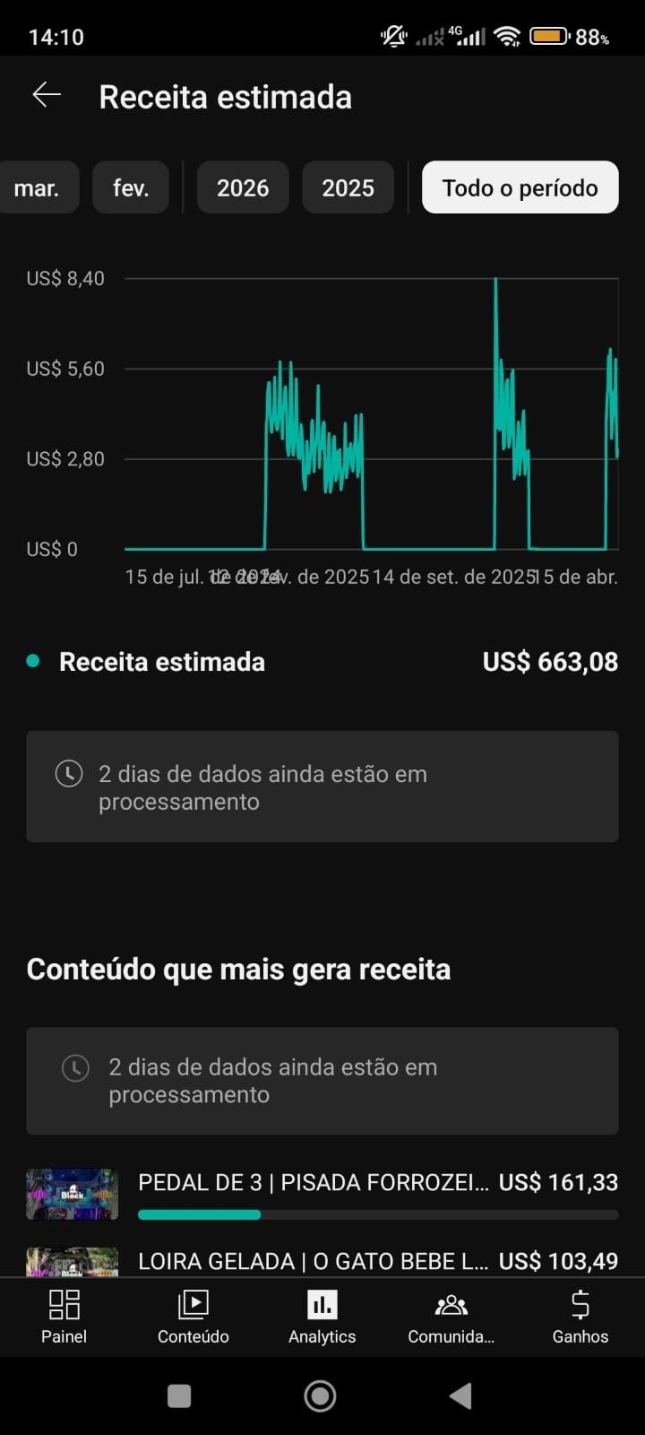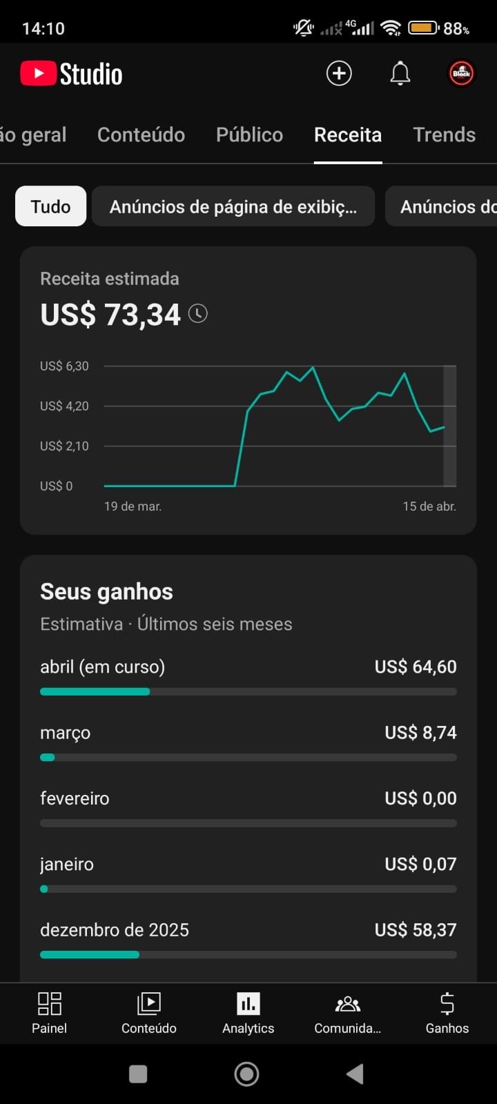 porém esse canal tá fzd a receita sozinho sem postar nenhum vídeo, e já fez 70 dólar já esse mês de abril.