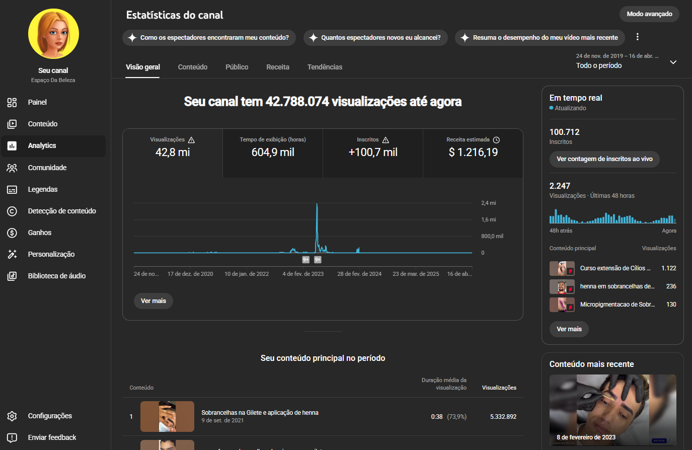 Canal 100k de beleza com muita view em video
