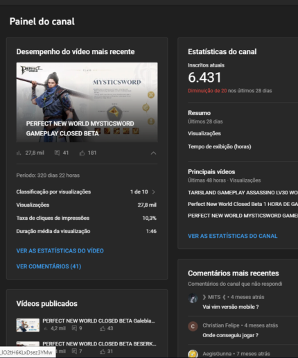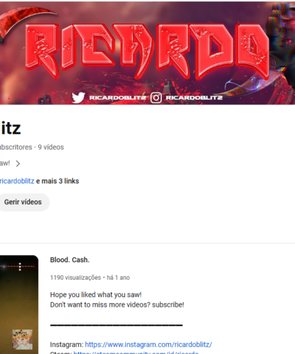 CANAL 1320 INSCRITOS, 133K VIWS (NICHO DE GAMES, ETC…) OPORTUNIDADE