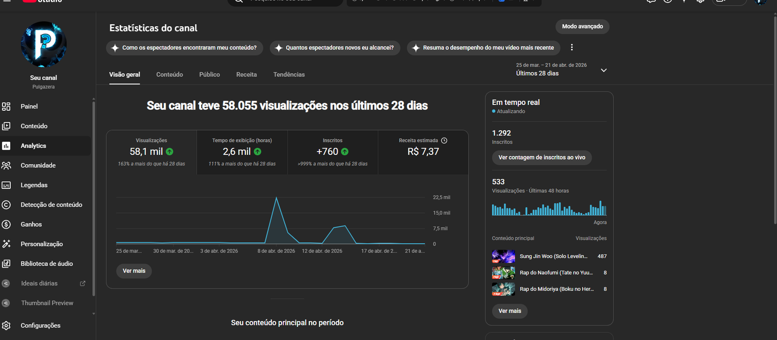 - Número de Inscritos: Nano em Ascensão: 0 a 3.000 inscritos