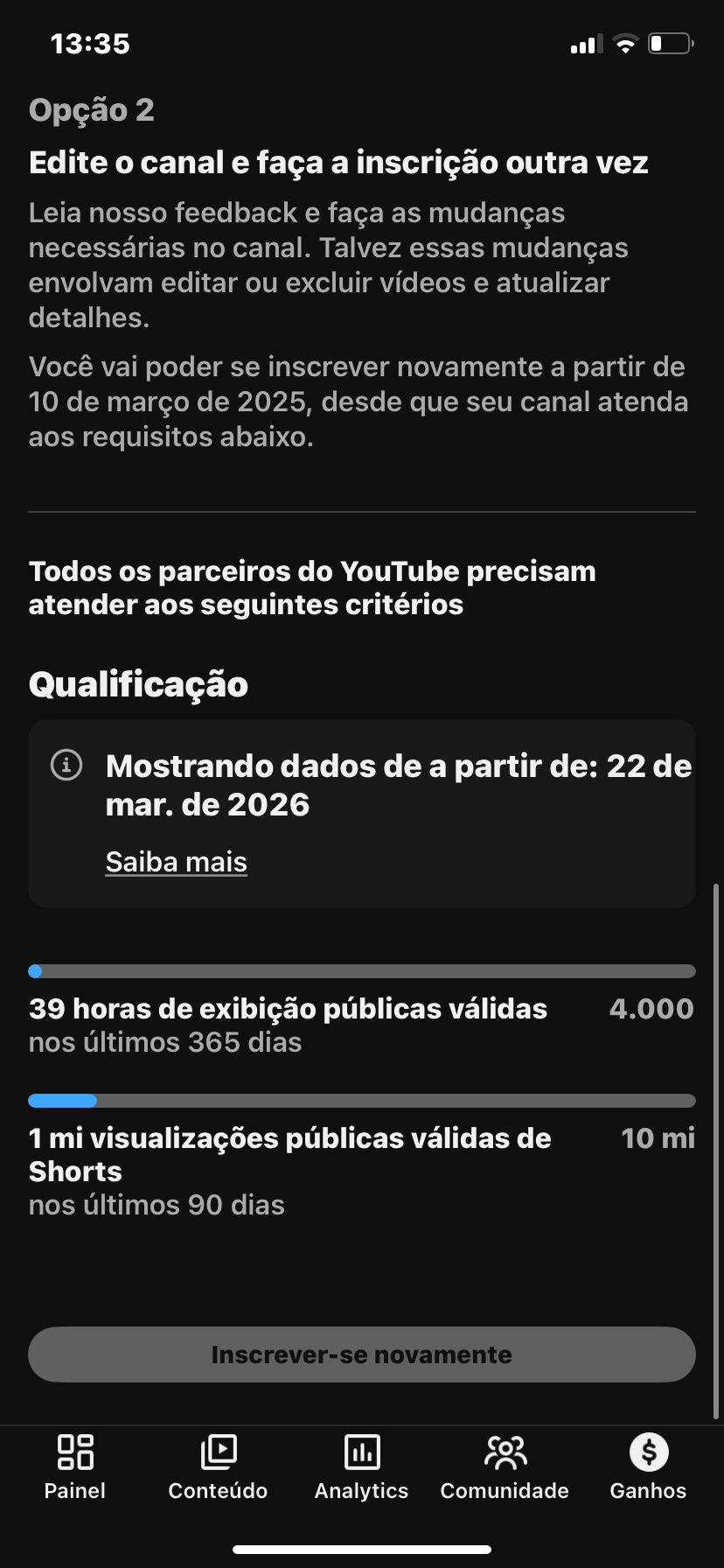 – Já está apto para solicitar monetização novamente