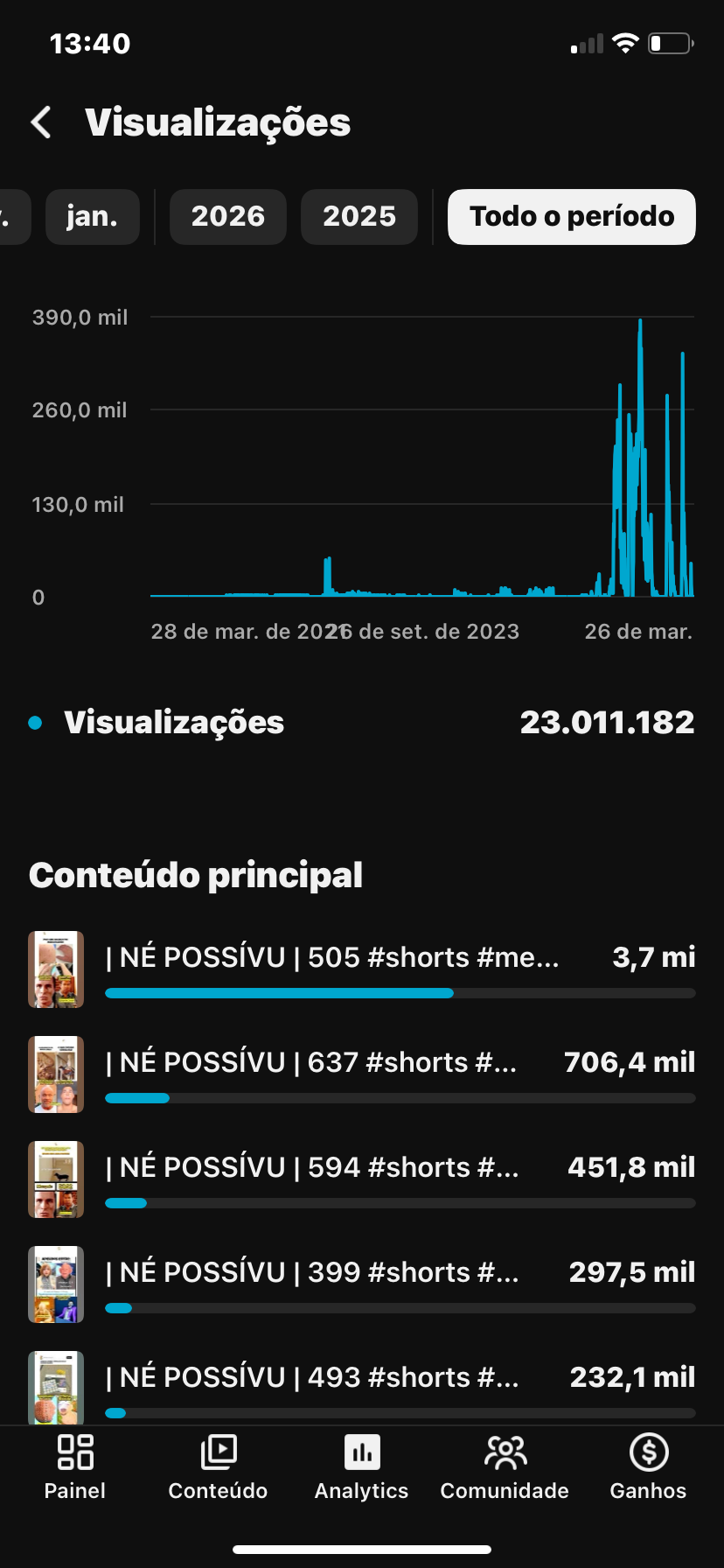 Estou vendendo um canal com mais de 23 milhões de visualizações acumuladas, já estruturado e com histórico forte dentro da plataforma.