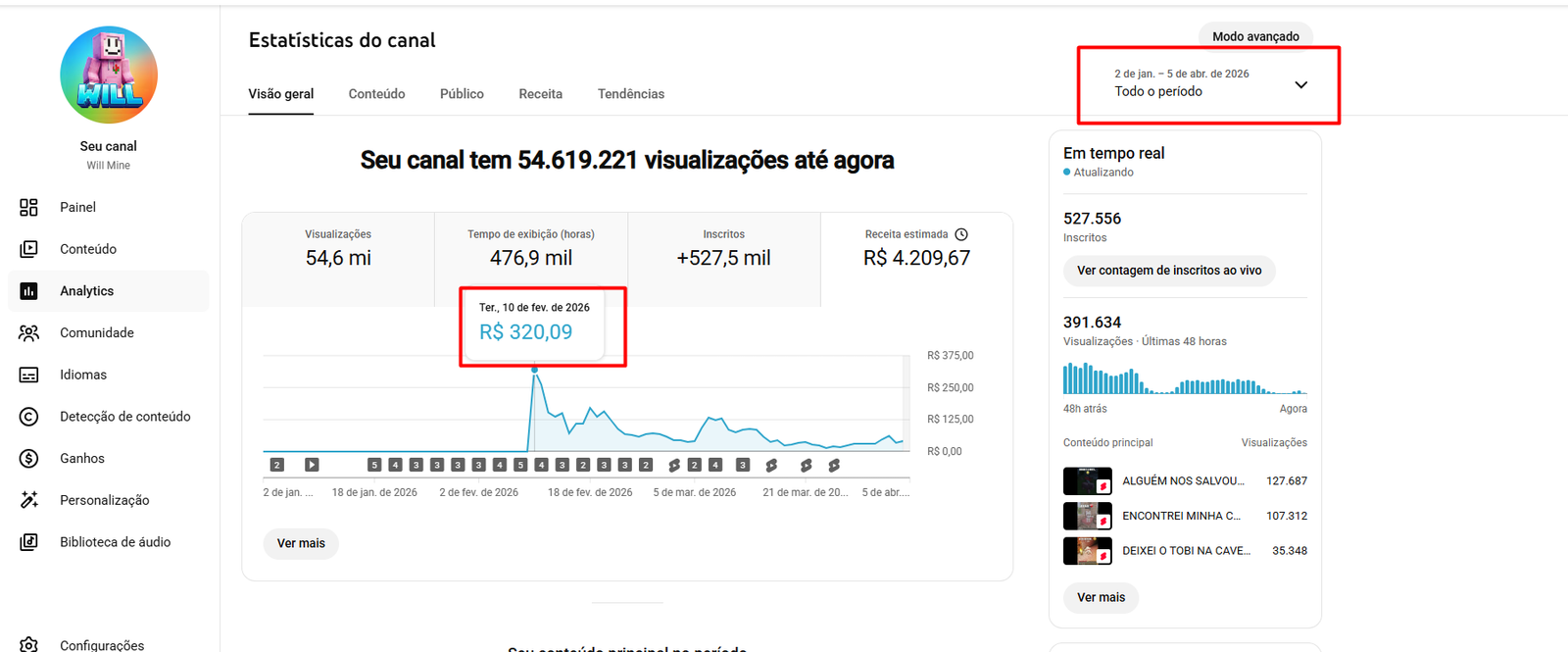 - Link da Conta: https://www.youtube.com/@willplaymine