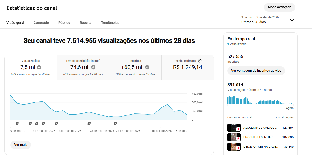 CANAL 500K MONETIZADO E GERANDO RECEITA – CRIADO EM 18 DE JANEIRO