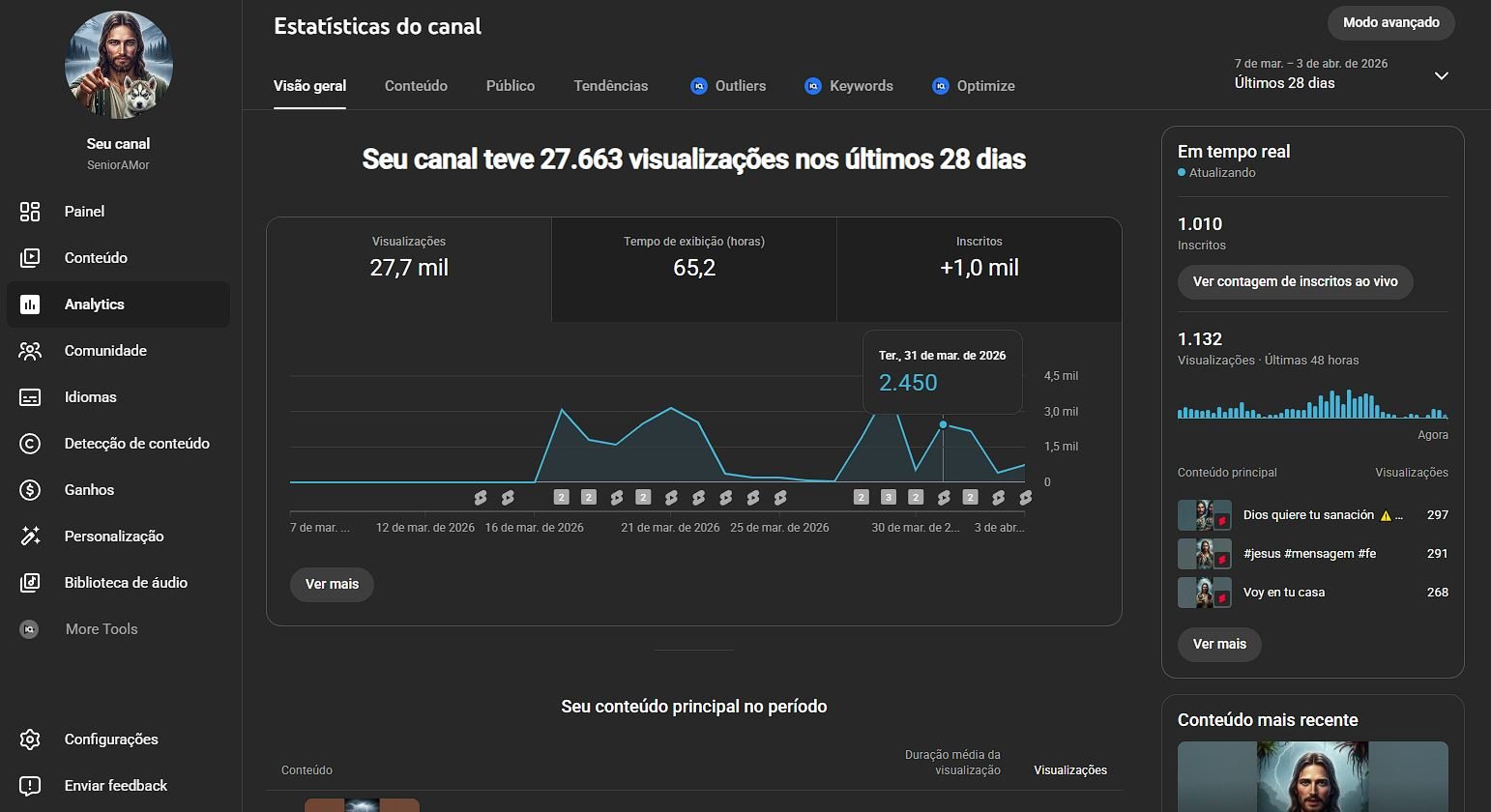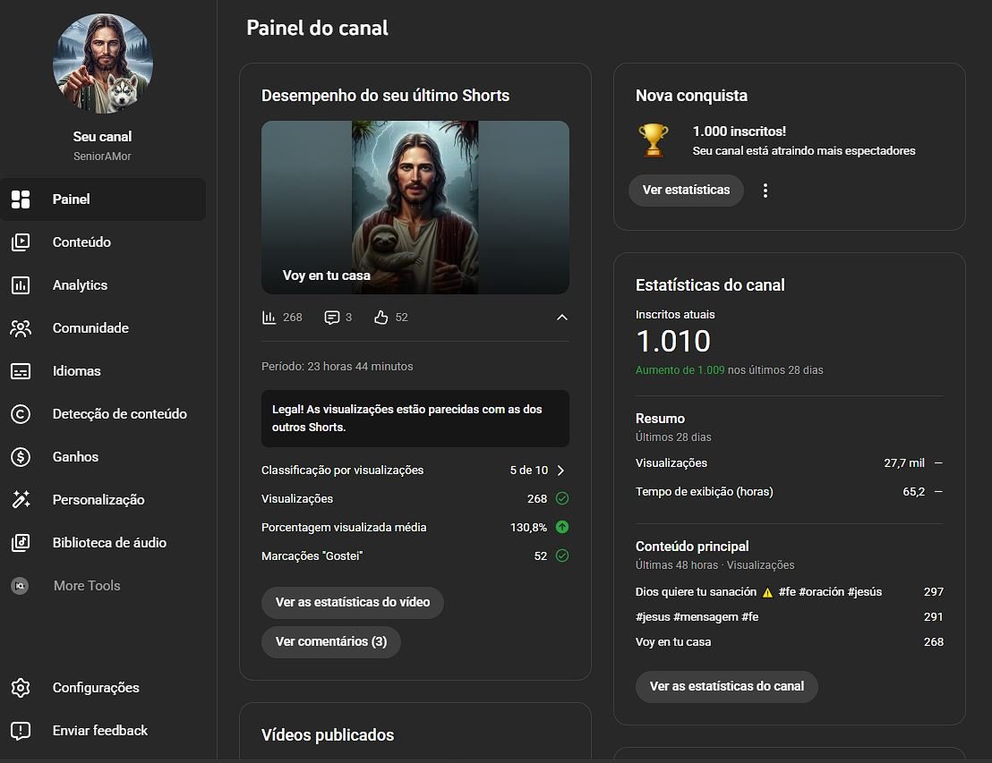 CANAL com 1,008 inscritos NICHO RELIGIOSO – SEM NENHUMA RESTRIÇÃO